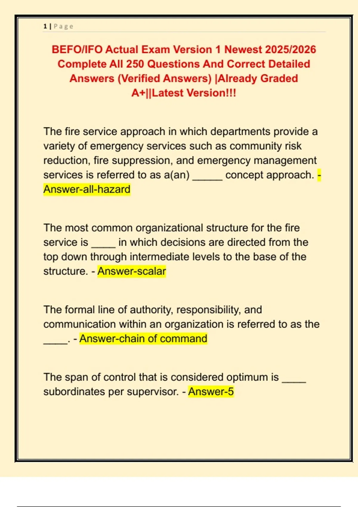 BEFO/IFO Actual Exam Version 1 Newest 2025/2026