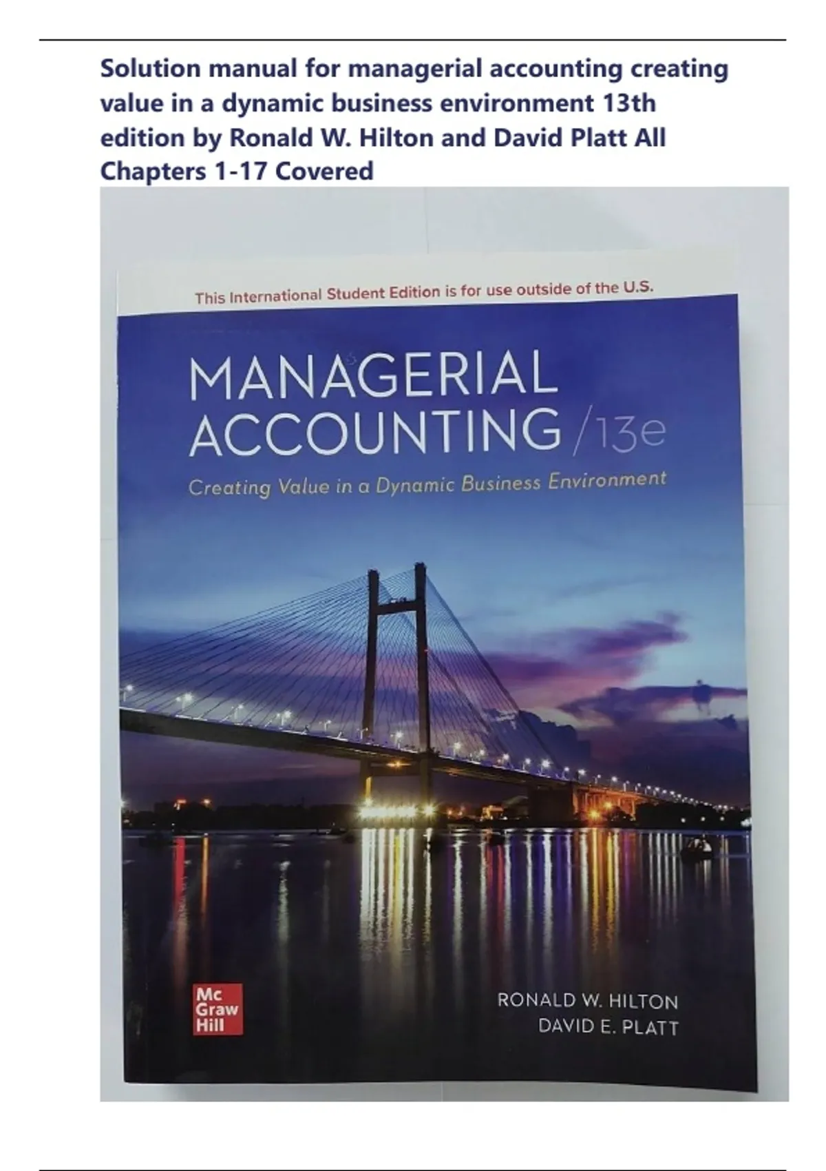 ******** INSTANT DOWNLOAD AS PDF FILE ******** Solutions Manual For Managerial Accounting: Creating Value in a Dynamic Business Environment, 13th Edition by Hilton, Chapters 1 - 17, Complete > Download as a Pdf File < 1. Managerial Accounting 13th Edition Hilton test bank pdf download 2....