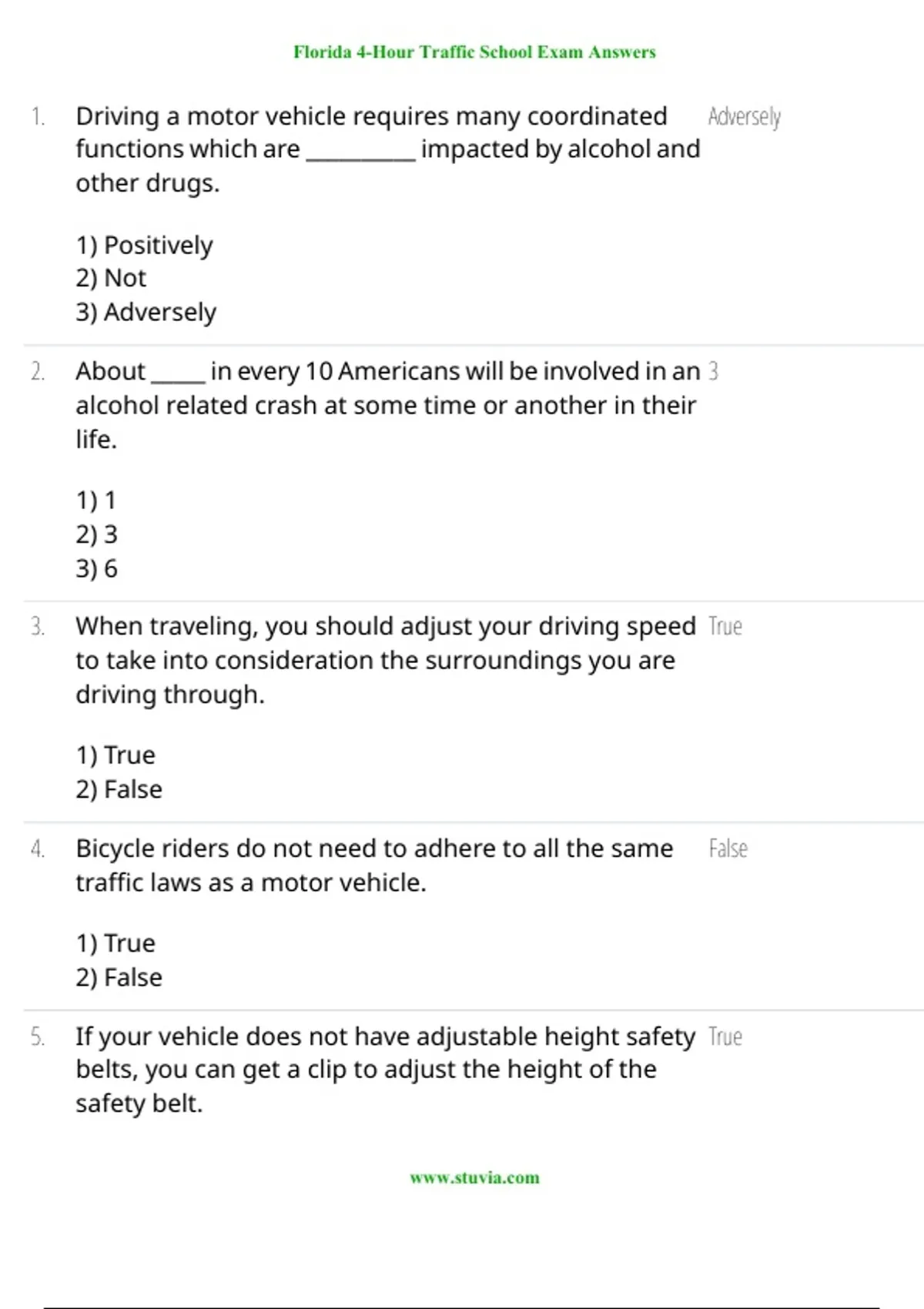 Pass your Florida 4-Hour Traffic School Exam with this verified study guide. Includes updated answers, explanations, and exam-focused content to help you complete the course quickly and confidently.