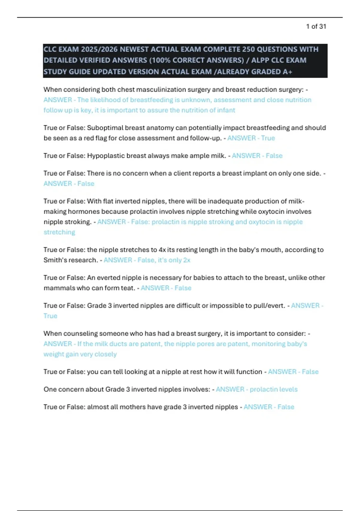 DETAILED VERIFIED ANSWERS (100% CORRECT ANSWERS) / ALPP CLC EXAM