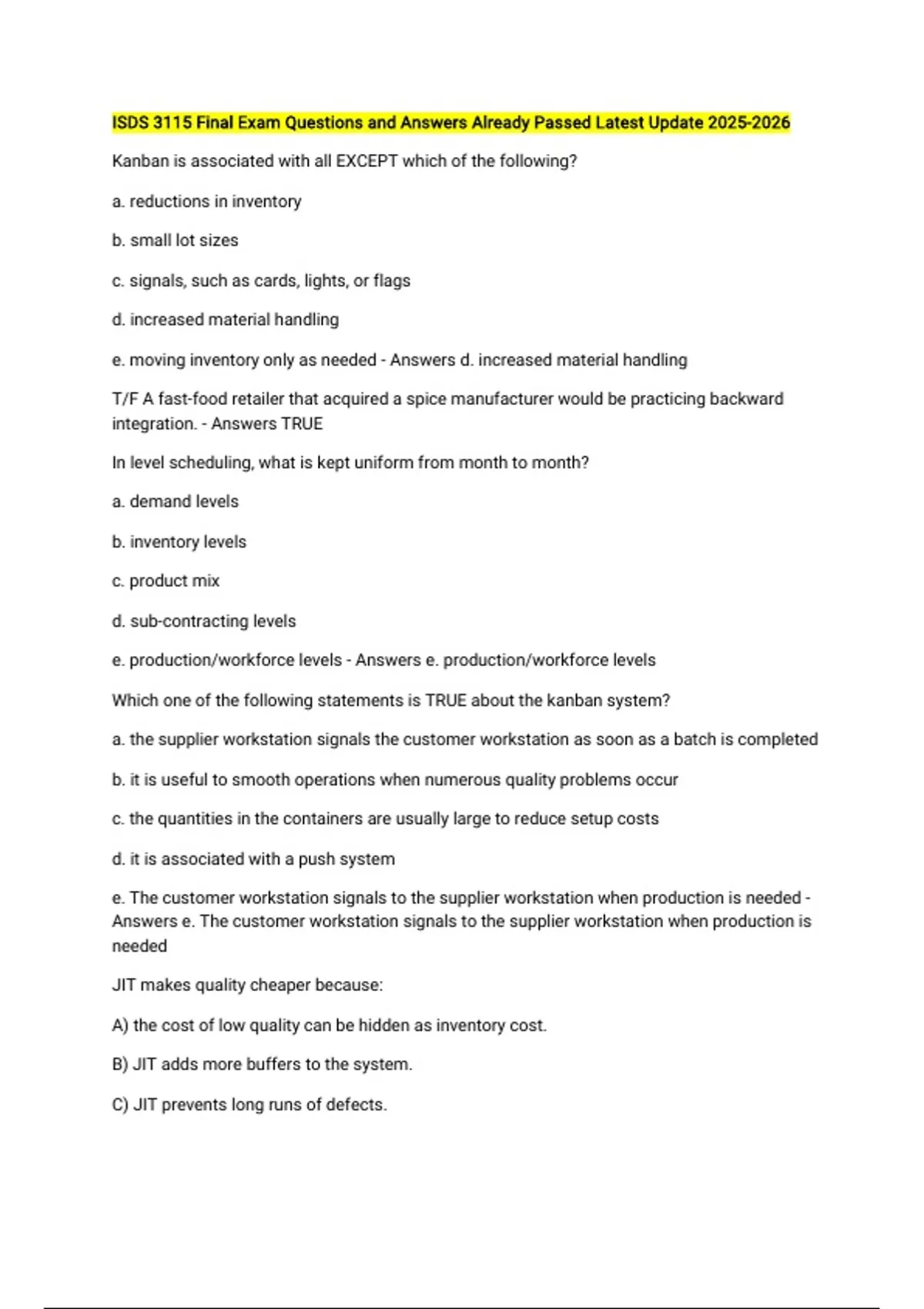 Answers e. The customer workstation signals to the supplier workstation when production is