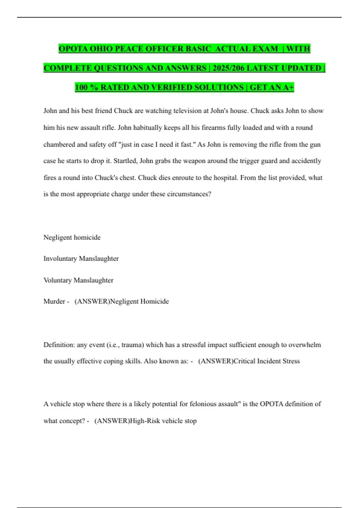 Murder - (ANSWER)Negligent Homicide