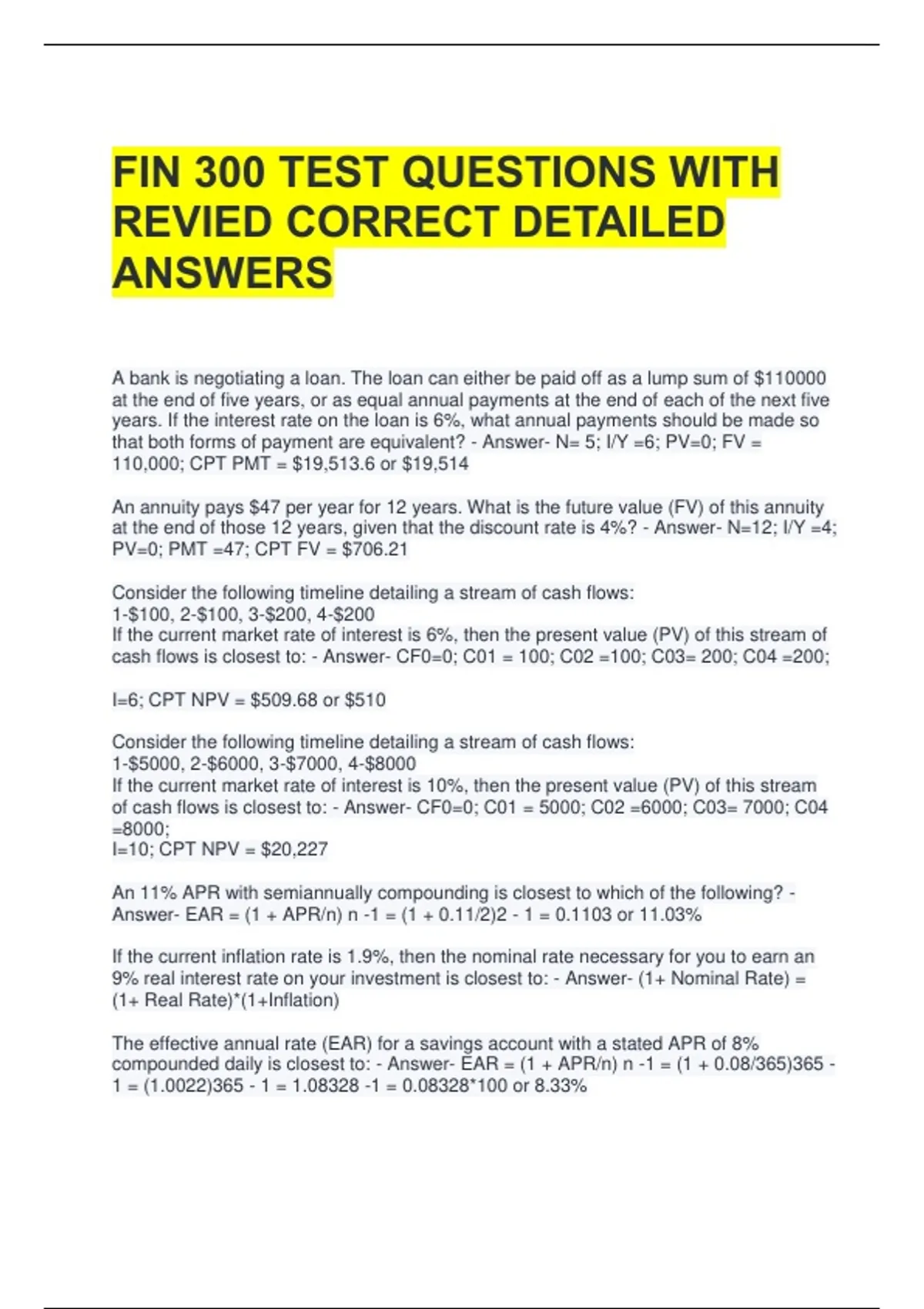 FIN 300 TEST QUESTIONS WITH REVIED CORRECT DETAILED ANSWERS