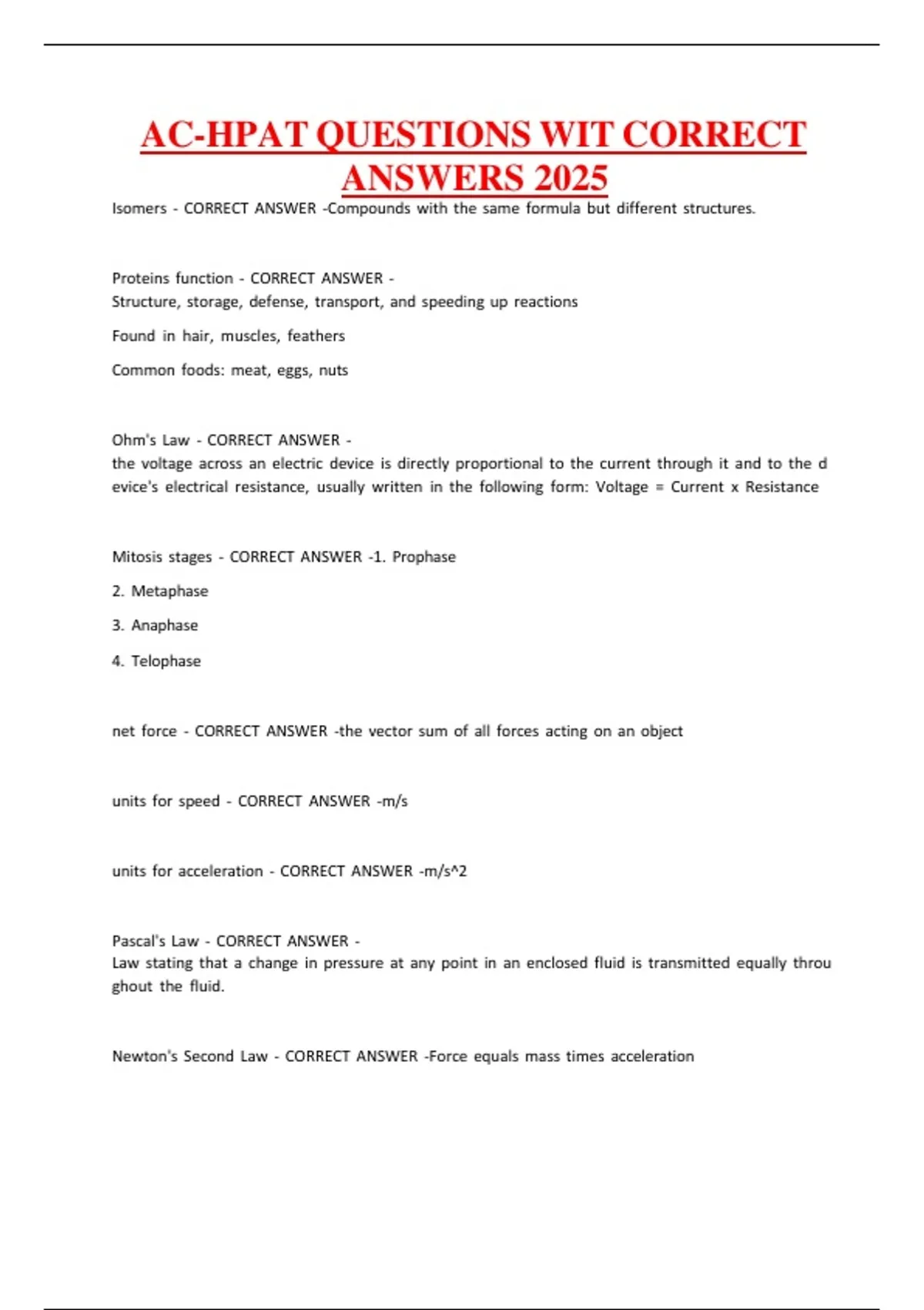 AC-HPAT QUESTIONS WIT CORRECT ANSWERS 2025