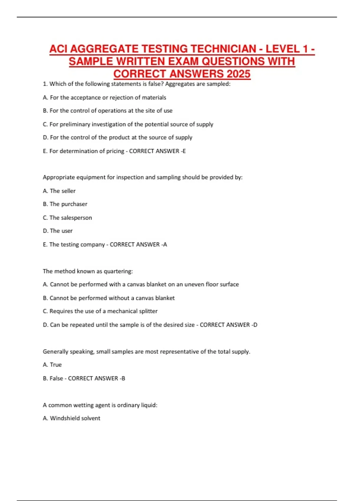 ACI AGGREGATE TESTING TECHNICIAN - LEVEL 1 -