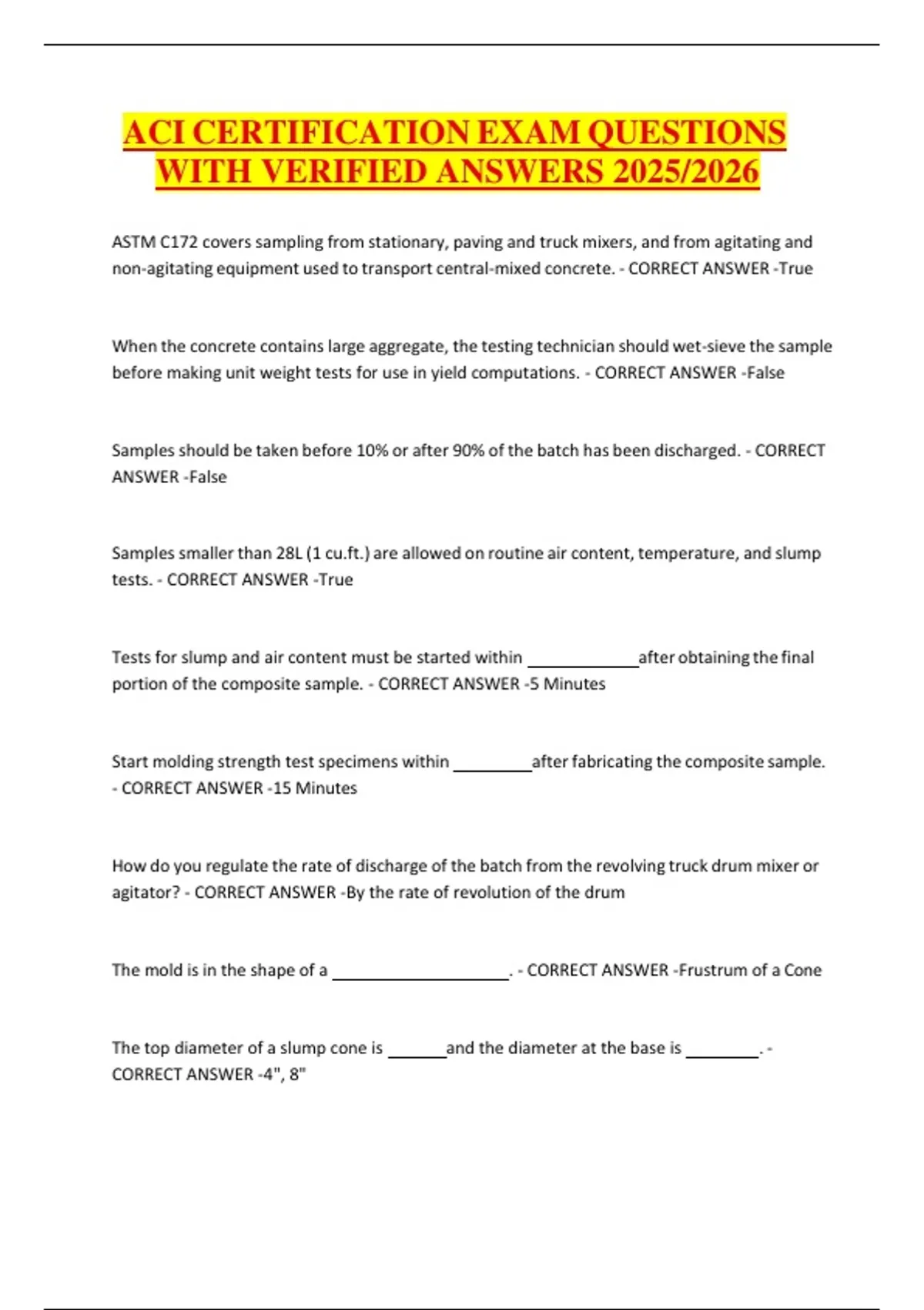 ACI CERTIFICATION EXAM QUESTIONS