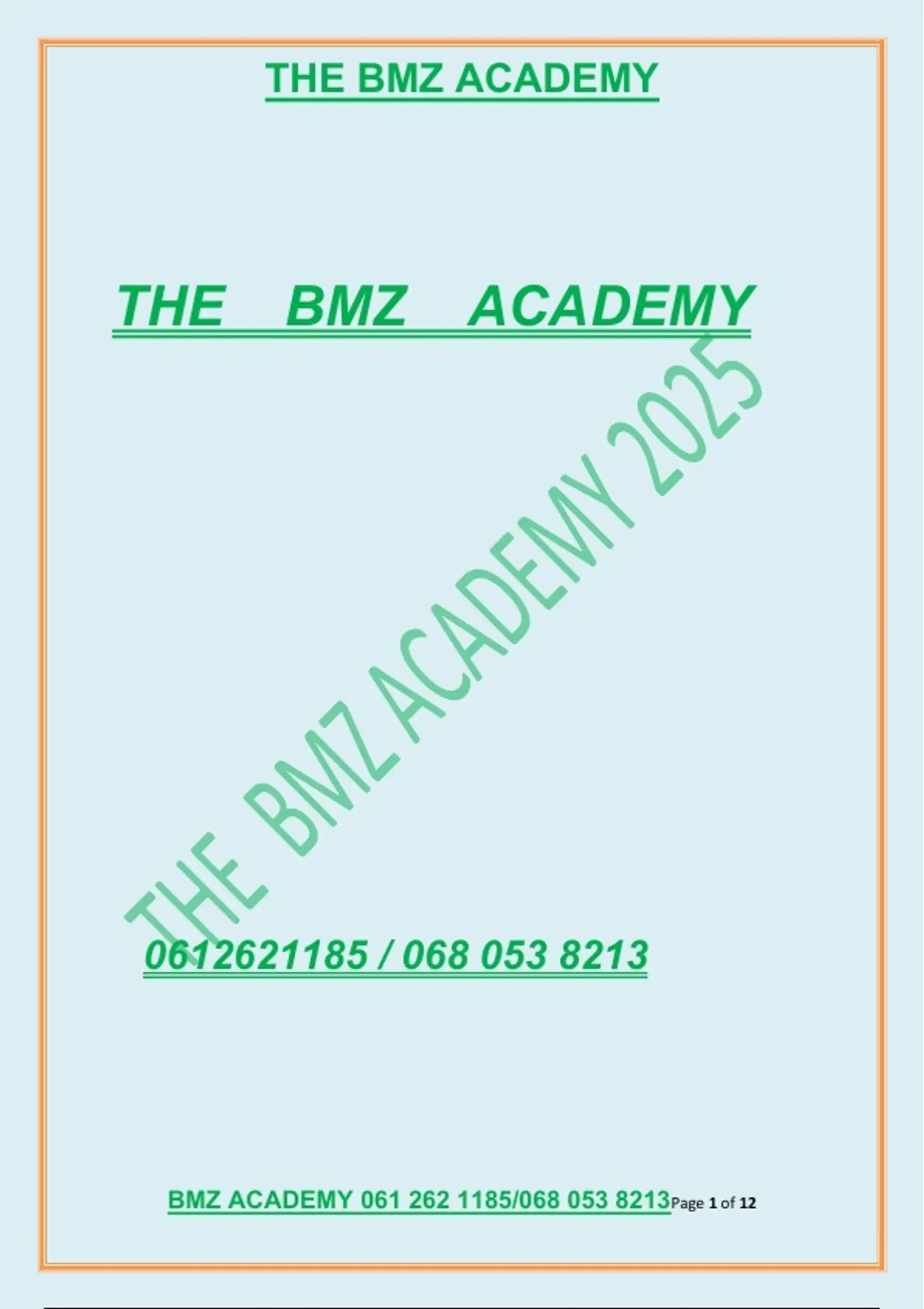 BMZ ACADEMY 061 262 1185/068 053 8213Page 1 of 12