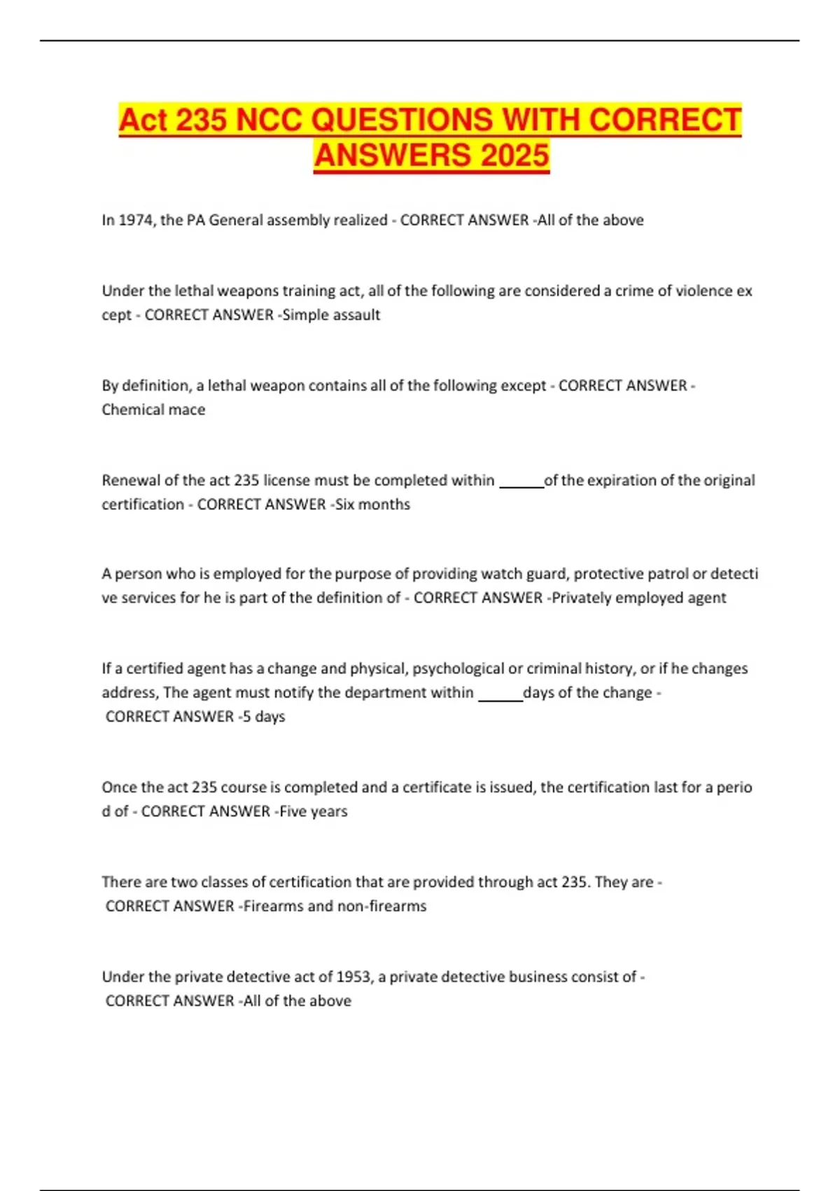 Act 235 NCC QUESTIONS WITH CORRECT ANSWERS 2025