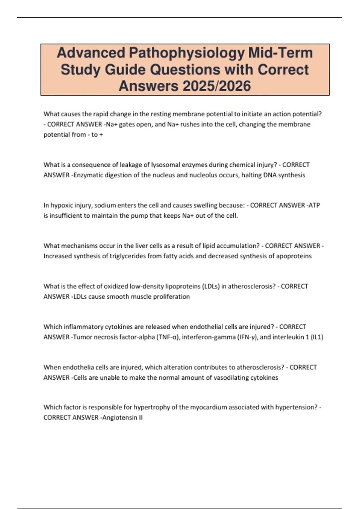 Advanced Pathophysiology Mid-Term Study Guide Questions with Correct Answers 2025/2026