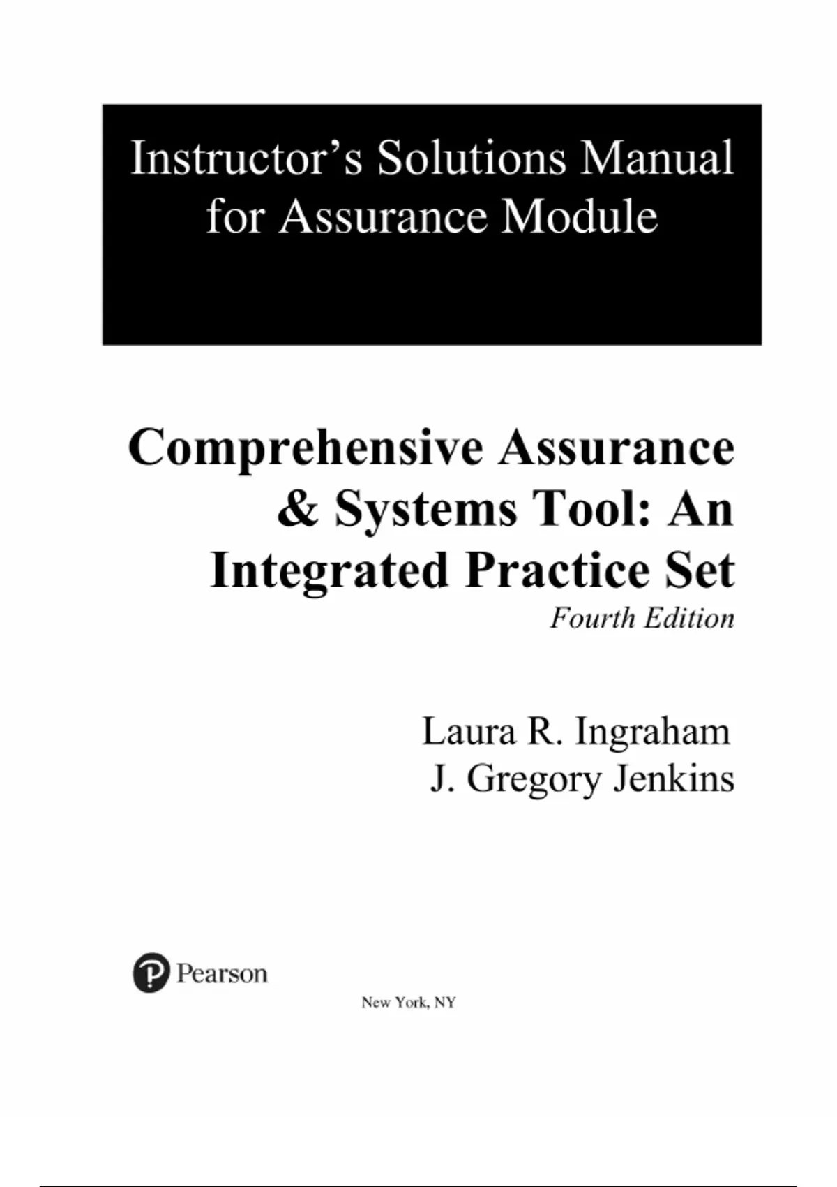 The Instructor’s Solutions Manual for the Assurance Module in Comprehensive Assurance & Systems Tool (CAST), 4th Edition by Laura R. Ingraham and J. Greg Jenkins (ISBN 9780134790831) provides comprehensive instructor support created in alignment with the verified Table of Contents of the Assurance Module—sourced directly from Pearson documentation. The Assurance Module is structured as follows: Client Acceptance, Understanding the Business Environment, Identification of Audit Tests for the Expenditure Cycle, Selection of Audit Tests and Risk Assessment for the Expenditure Cycle, Performance of Audit Tests for the Revenue Cycle, and Completing the Audit. This Solutions Manual includes detailed, step-by-step explanations for each module section, complete with instructor commentary and guidance on applying auditing standards, contextual analysis, risk assessment methodologies, audit testing procedures across revenue and expenditure cycles, and strategies for audit completion. It equips instructors with teaching objectives, best-practice insights, common student misconceptions, and recommended pacing for effectively using this module in auditing and accounting information systems courses.