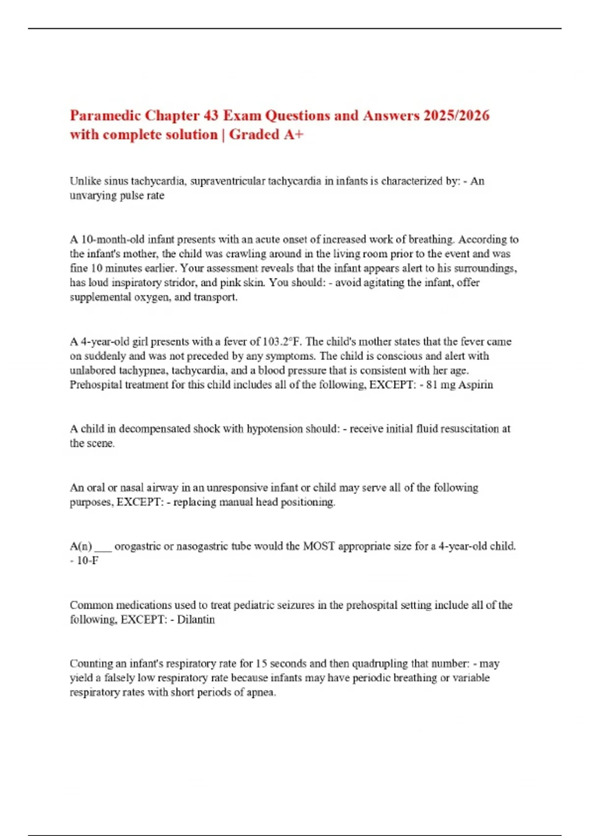 Paramedic Chapter 43 Exam Questions and Answers 2025/2026 with complete solution | Graded A+