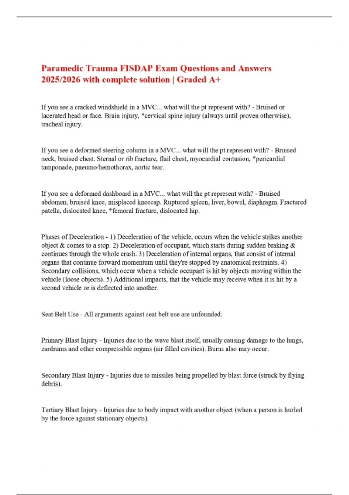 Paramedic Trauma FISDAP Exam Questions and Answers 2025/2026 with complete solution | Graded A+
