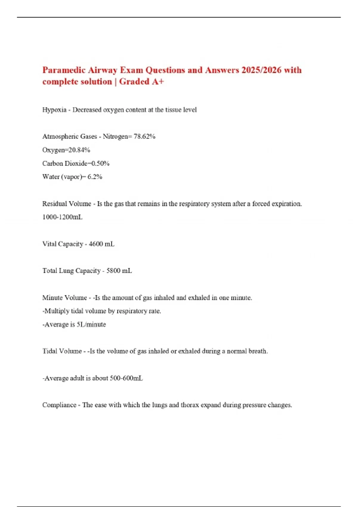 Paramedic Airway Exam Questions and Answers 2025/2026 with complete solution | Graded A+
