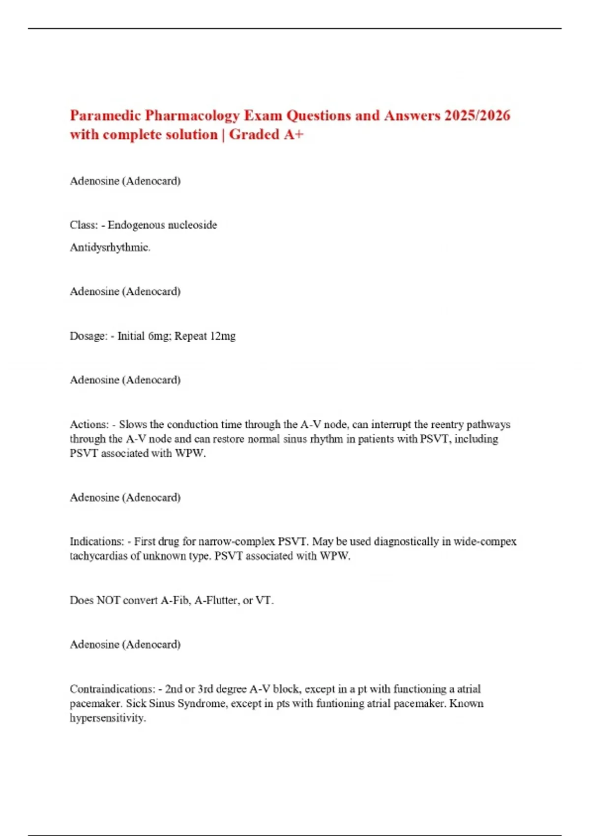 Paramedic Pharmacology Exam Questions and Answers 2025/2026 with complete solution | Graded A+