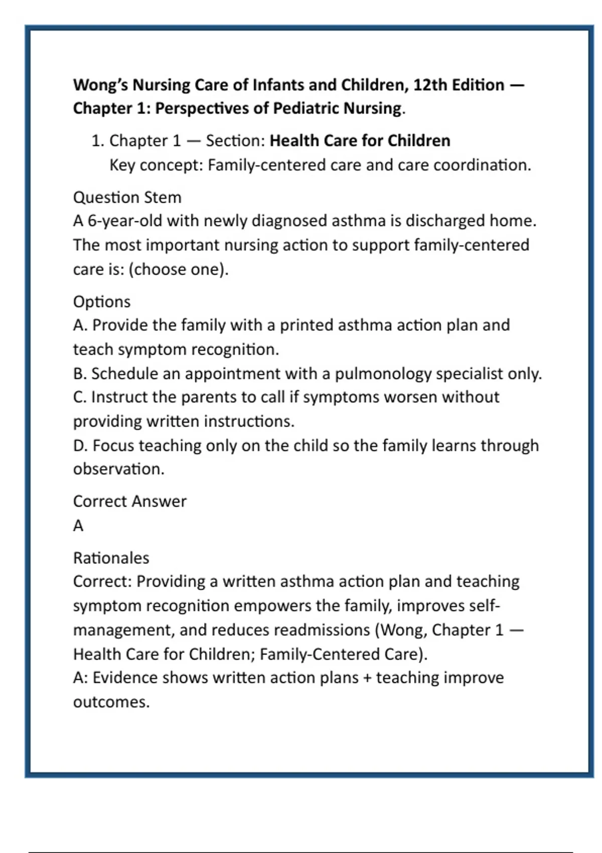A 6-year-old with newly diagnosed asthma is discharged home.
