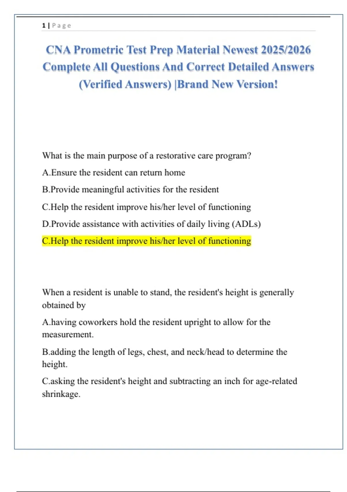 CNA Prometric Test Prep Material Newest 2025/2026