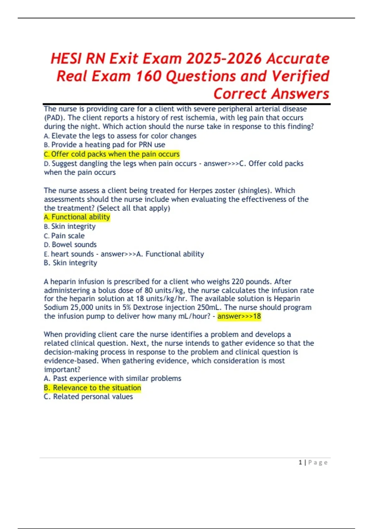 (PAD). The client reports a history of rest ischemia, with leg pain that occurs