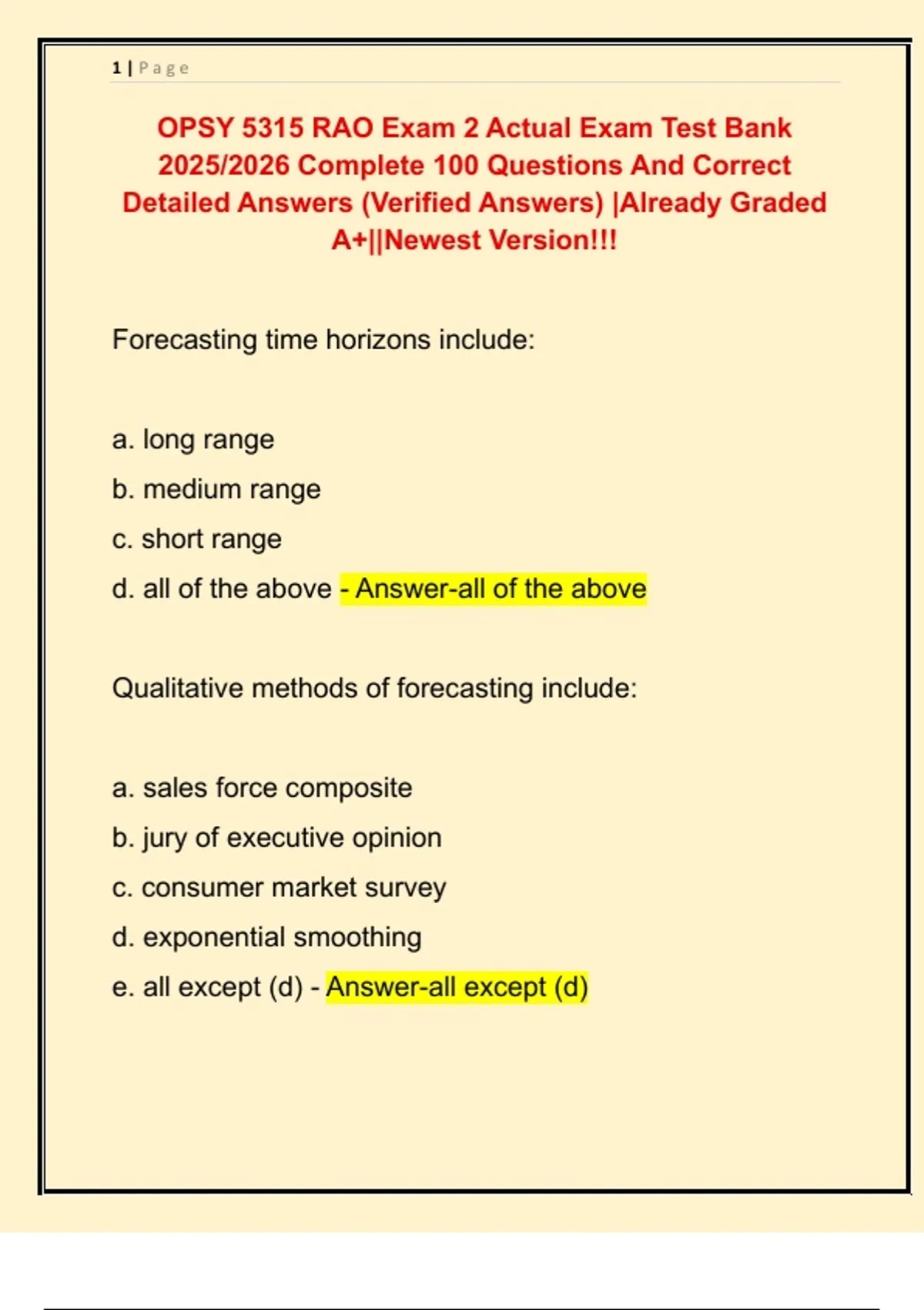 OPSY 5315 RAO Exam 2 Actual Exam Test Bank 2025/2026 Complete 100 Questions And Correct Detailed Answers (Verified Answers) |Already Graded A+||Newest Version!!!
