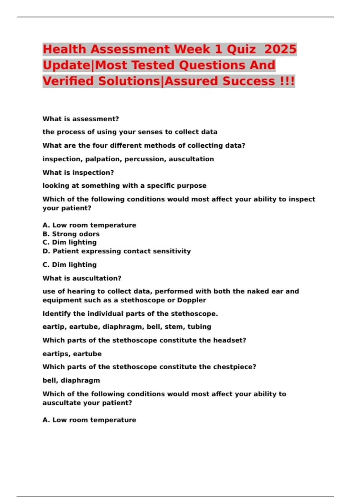 Health Assessment Week 1 Quiz 2025