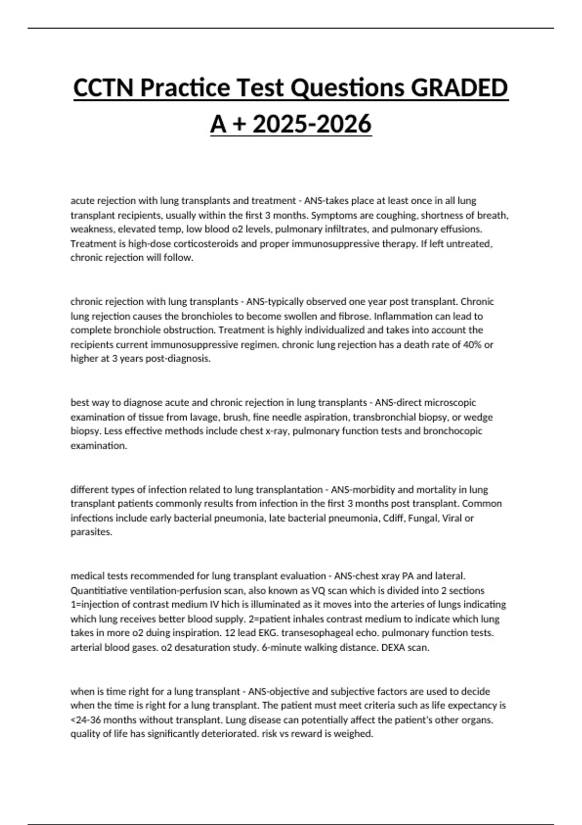 chronic rejection with lung transplants - ANS-typically observed one year post transplant. Chronic