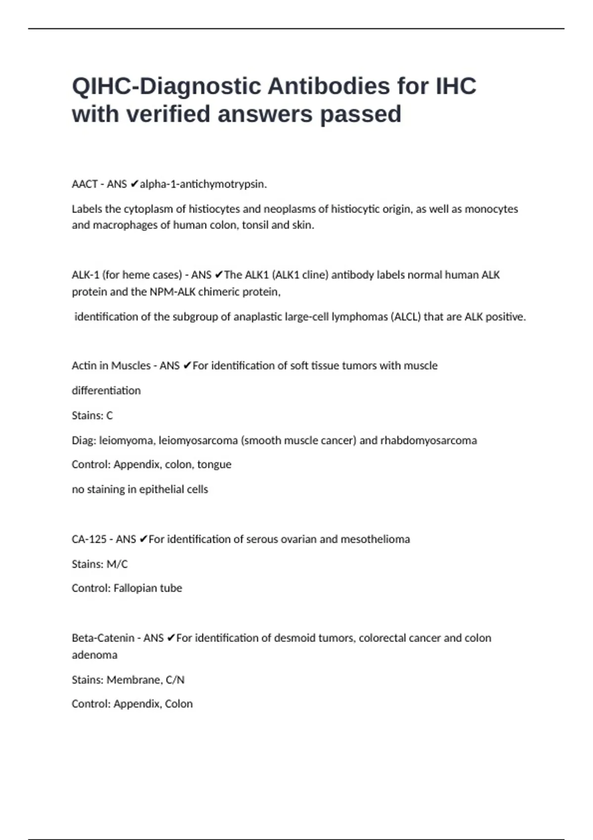 Actin in Muscles - ANS ✔For identification of soft tissue tumors with muscle