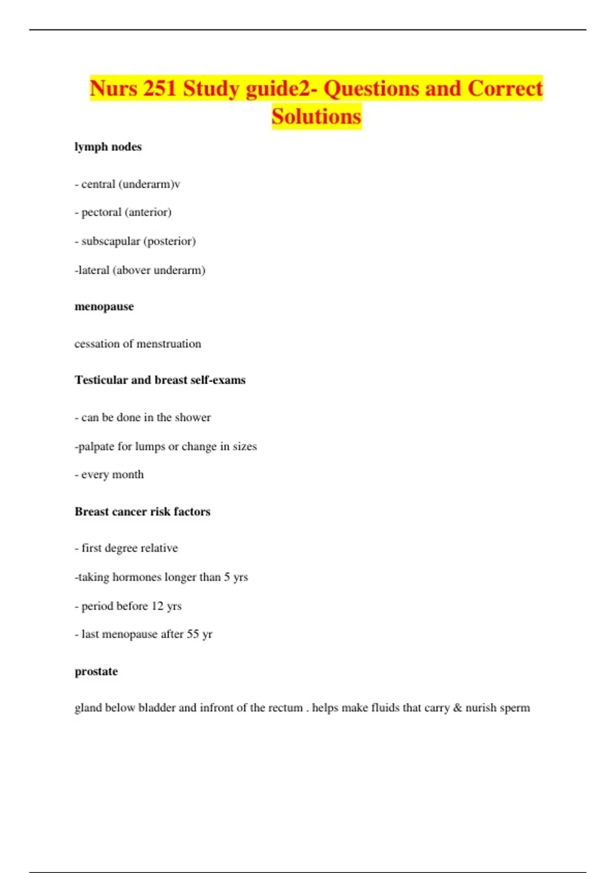 Nurs 251 Study guide2- Questions and Correct Solutions