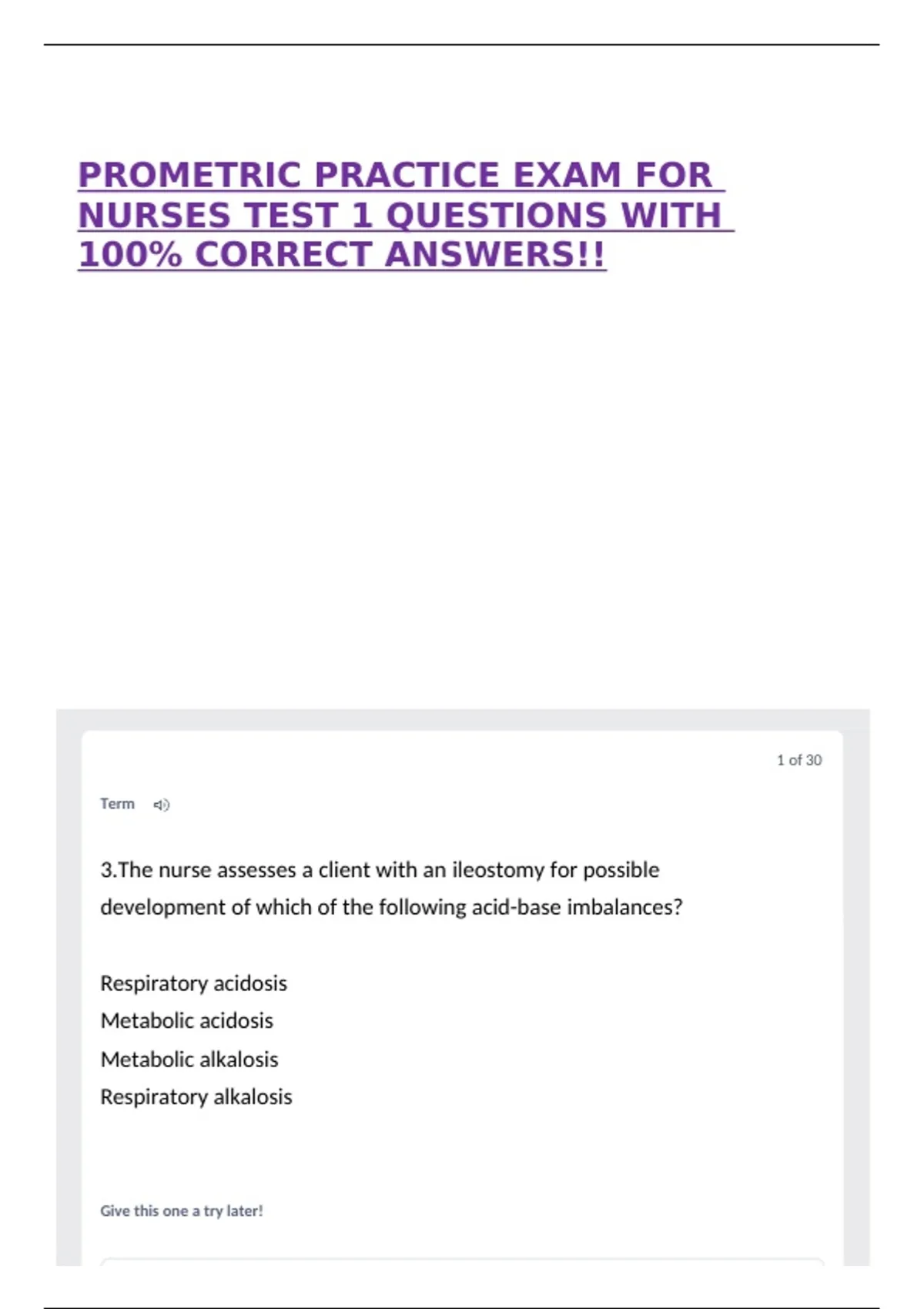 PROMETRIC PRACTICE EXAM FOR NURSES TEST 1 QUESTIONS WITH 100% CORRECT ANSWERS!!