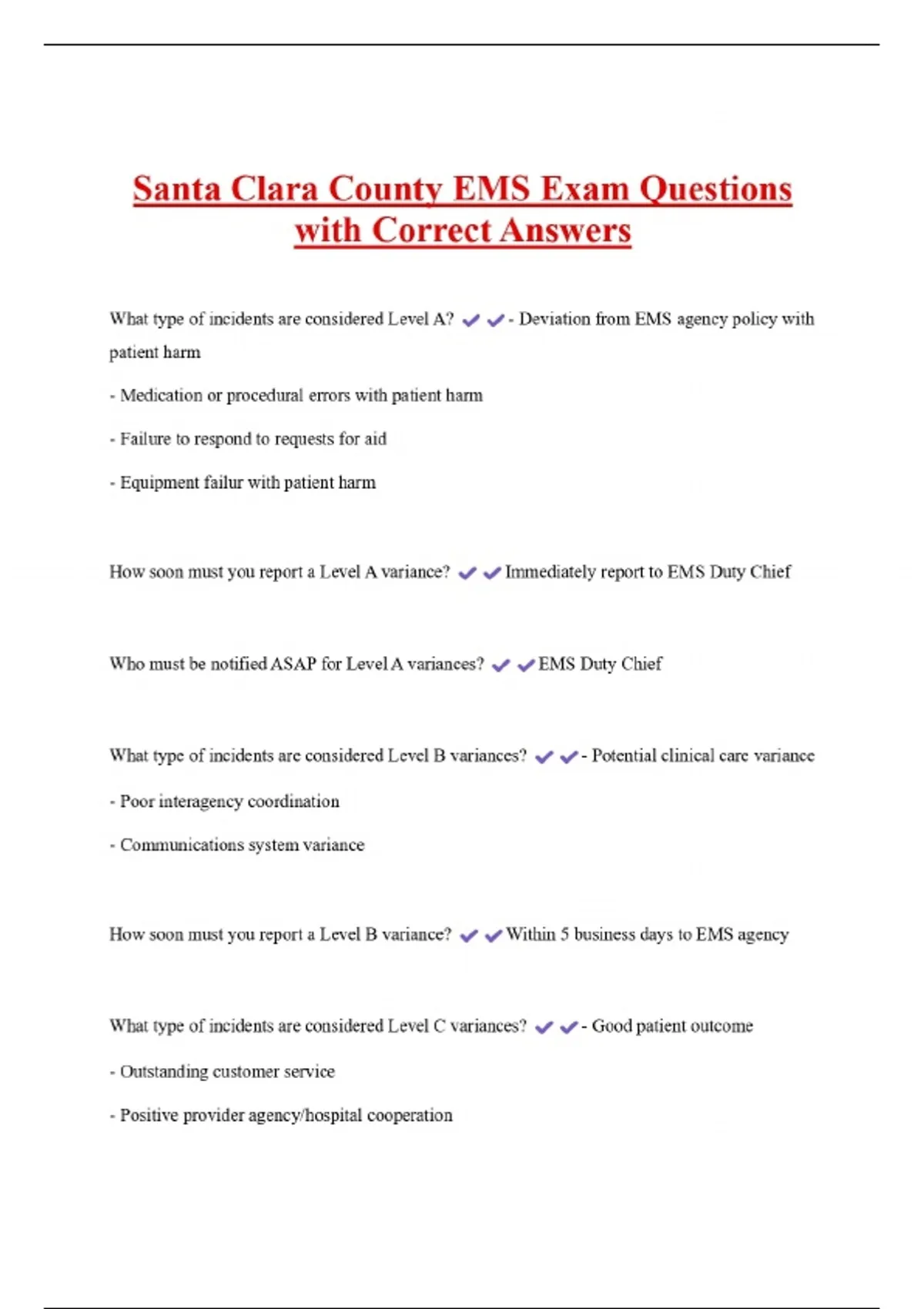 Santa Clara County EMS Exam Questions Santa Clara County EMS Exam Questions with Correct Answers