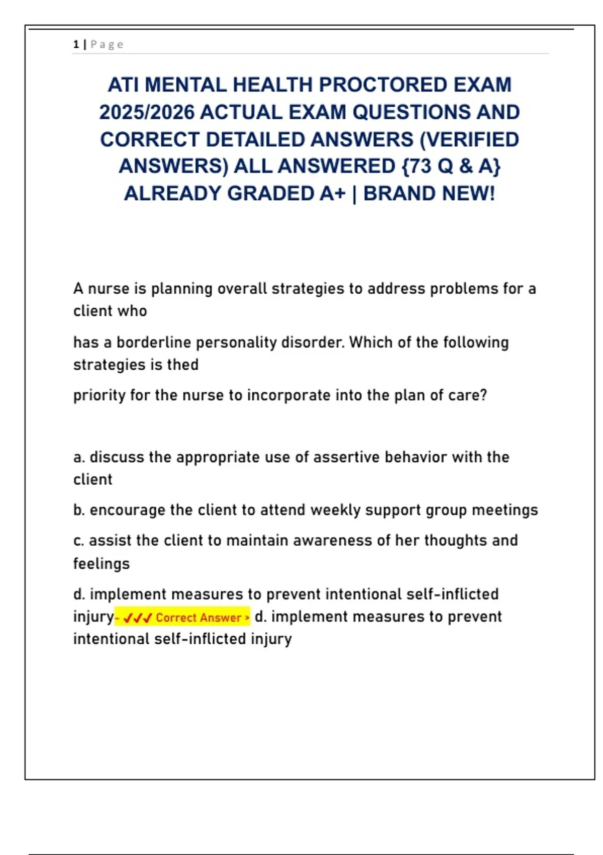 d. Ask the client to identify her strengths- ✔✔✔ Correct Answer > a.