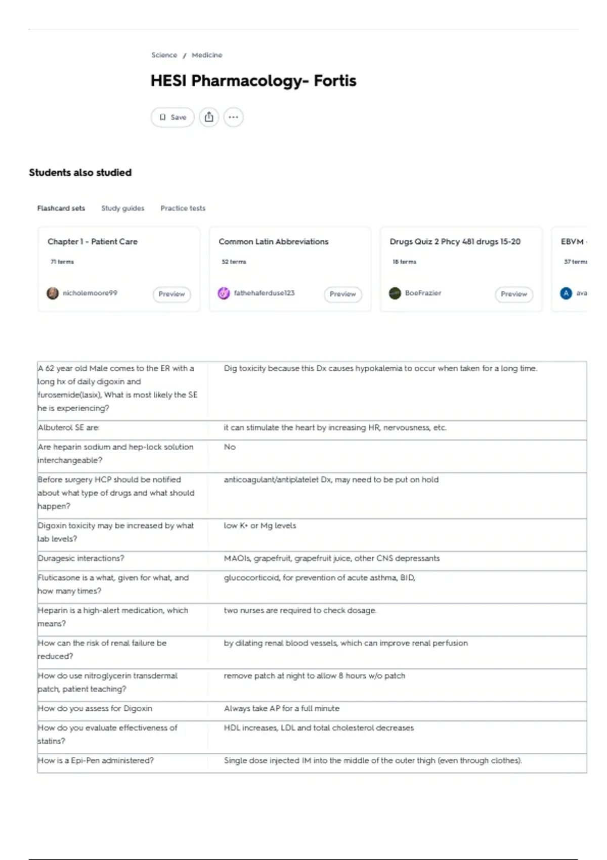 HESI Pharmacology- Fortis