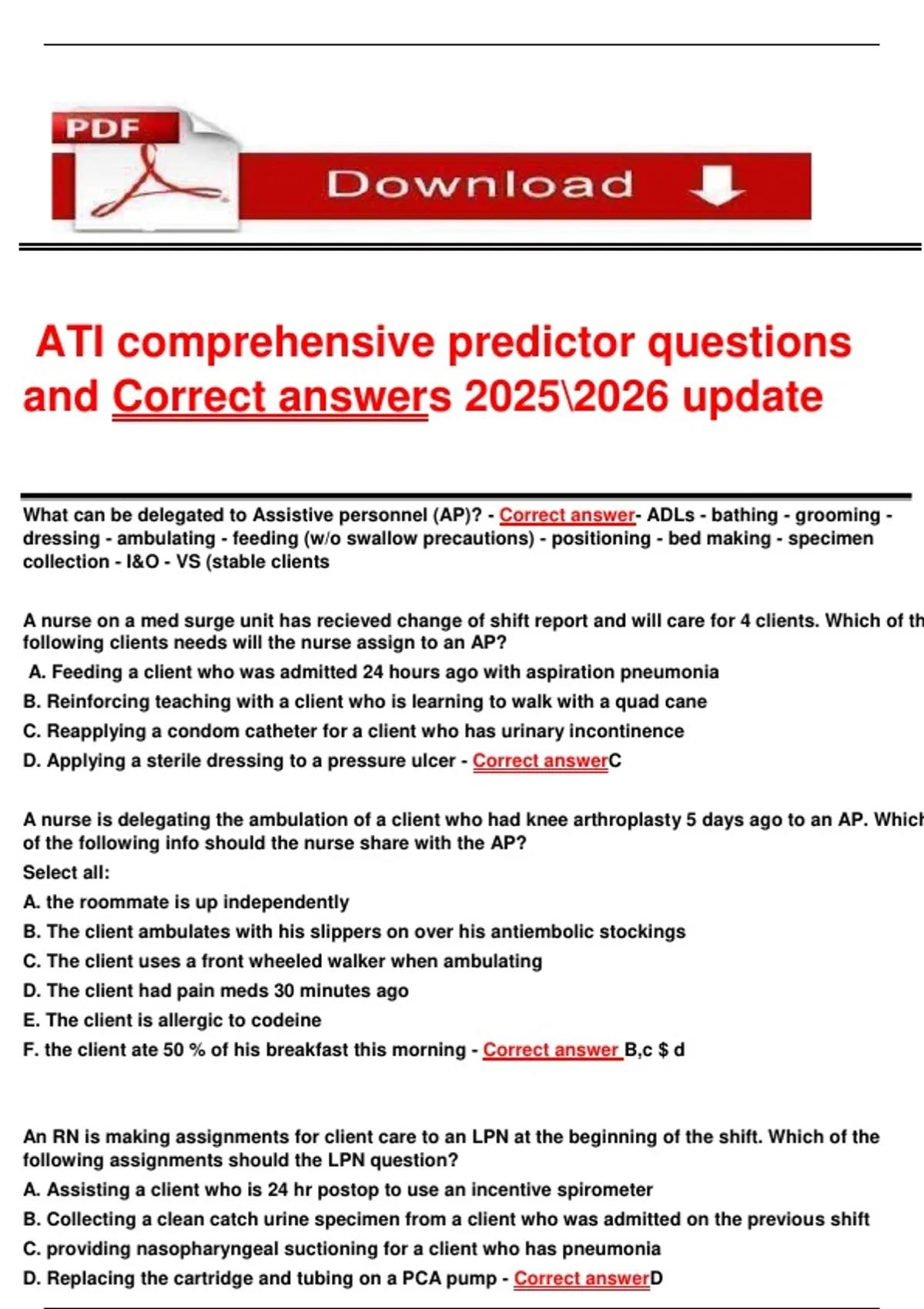 and Correct answers 2025\2026 update