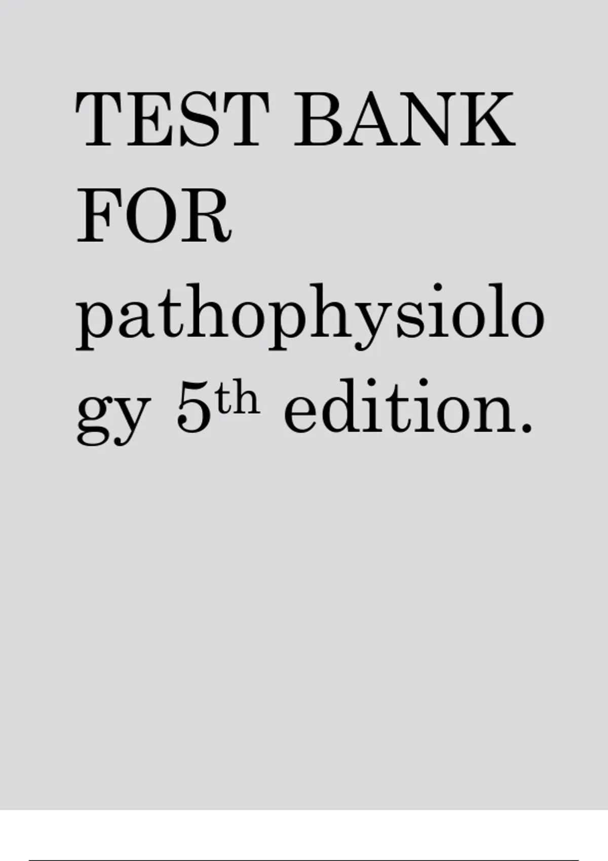 This comprehensive test bank for Pathophysiology, 5th Edition includes multiple-choice, true/false, and short-answer questions with verified answers. It covers all key pathophysiology concepts, including cellular function, organ systems, disease processes, diagnostics, and clinical applications. Designed for nursing students preparing for exams or review sessions, this resource ensures mastery of critical pathophysiology knowledge and clinical reasoning skills. pathophysiology, test bank, 5th edition, NR314, nursing exam, disease processes, organ systems, clinical reasoning, study guide, nursing review