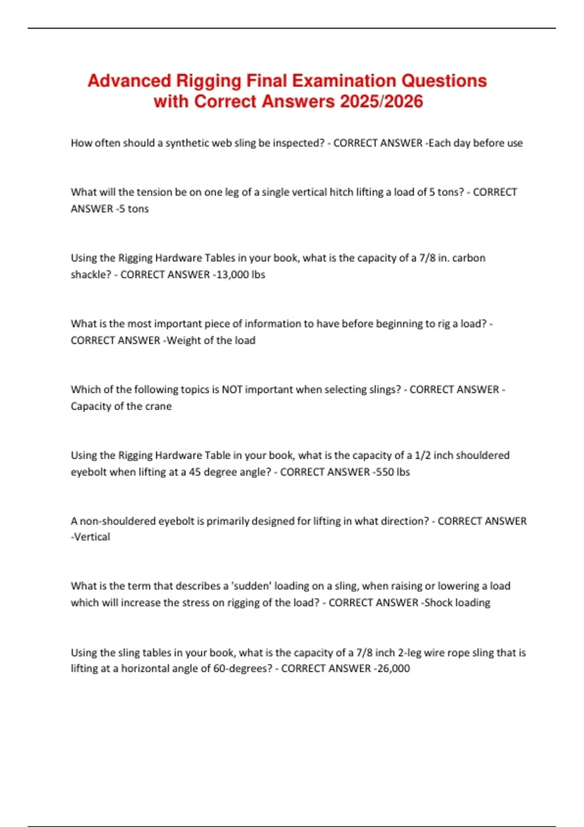 Advanced Rigging Final Examination Questions with Correct Answers 2025/2026