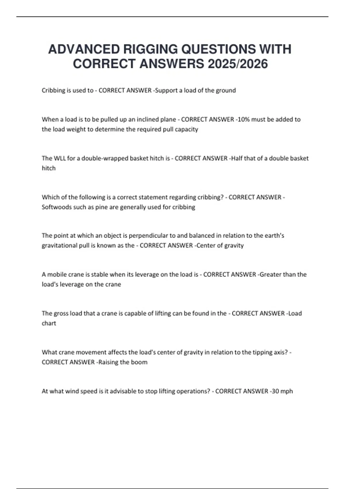 ADVANCED RIGGING QUESTIONS WITH CORRECT ANSWERS 2025/2026