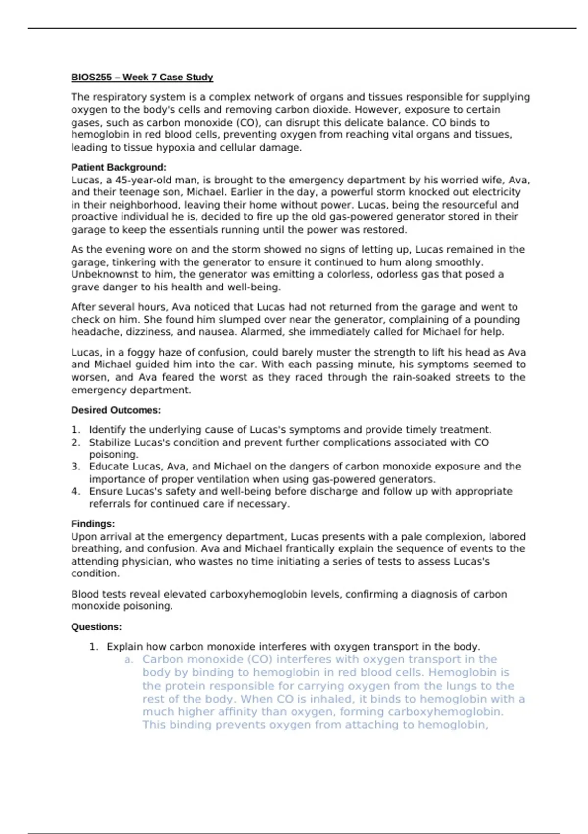 1. Explain how carbon monoxide interferes with oxygen transport in the body.