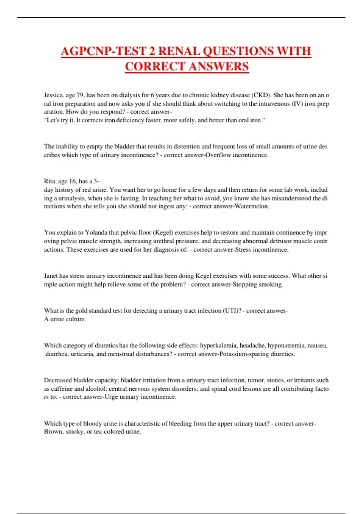 AGPCNP-TEST 2 RENAL QUESTIONS WITH CORRECT ANSWERS