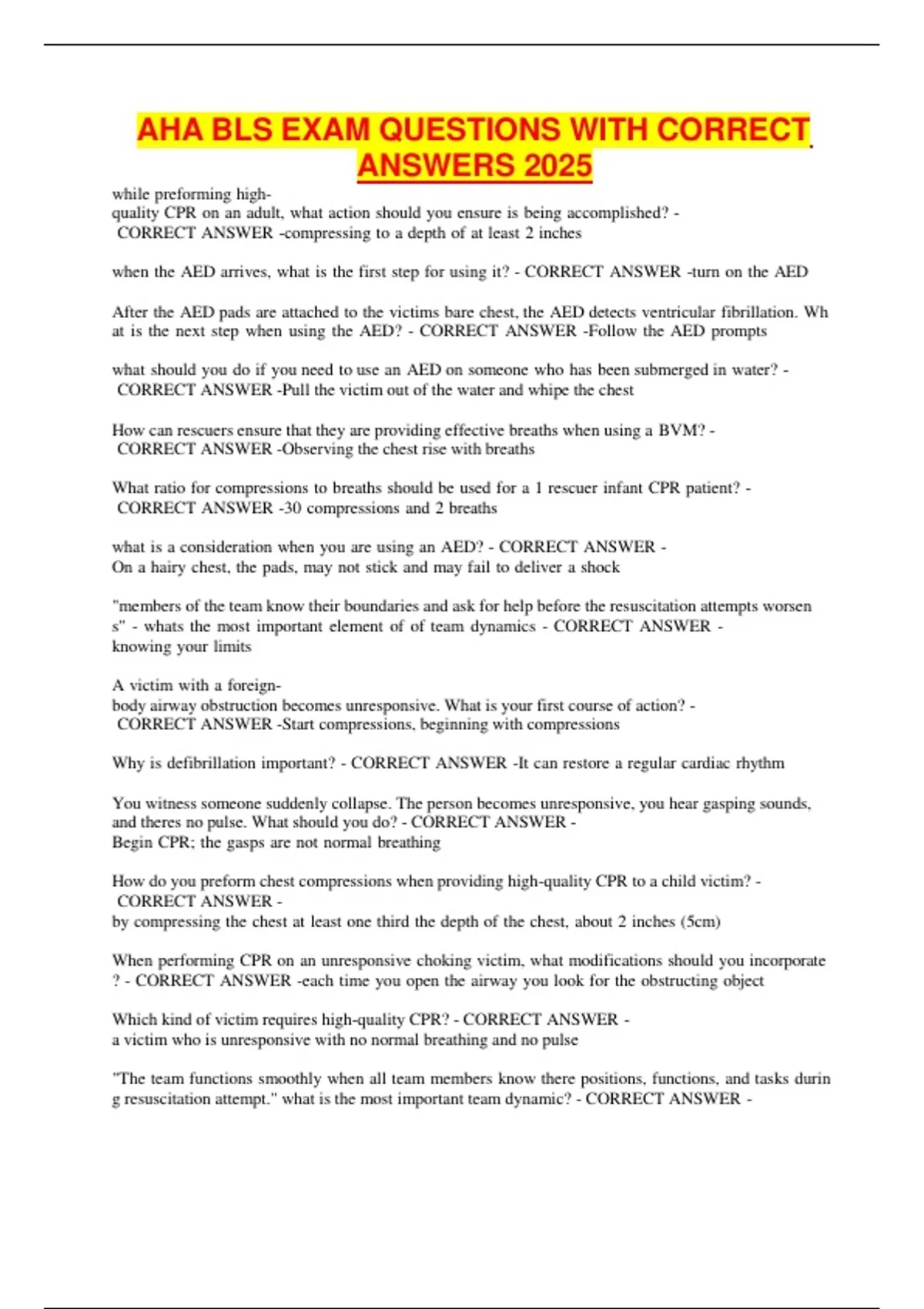 AHA BLS EXAM QUESTIONS WITH CORRECT ANSWERS 2025