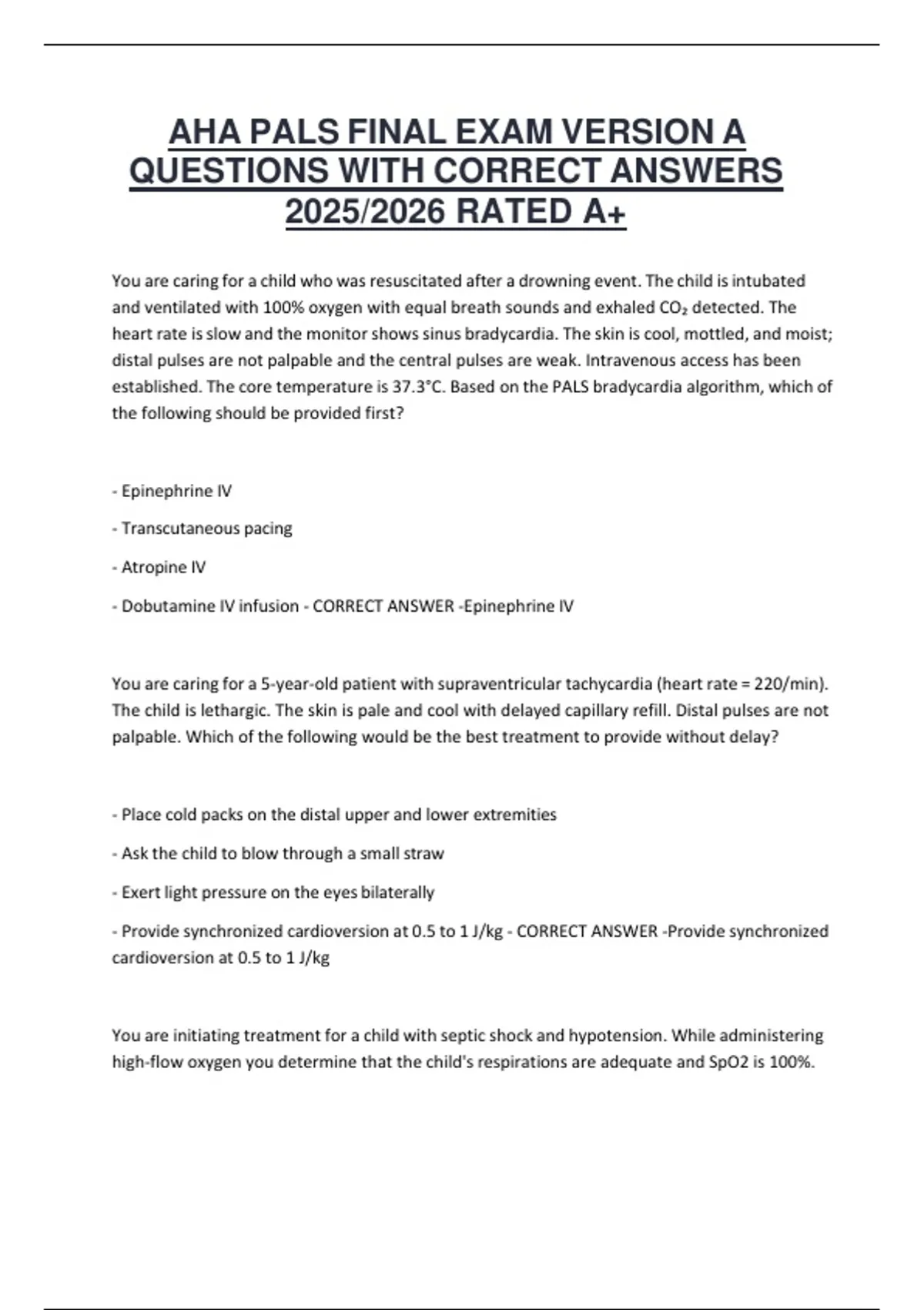 AHA PALS FINAL EXAM VERSION A