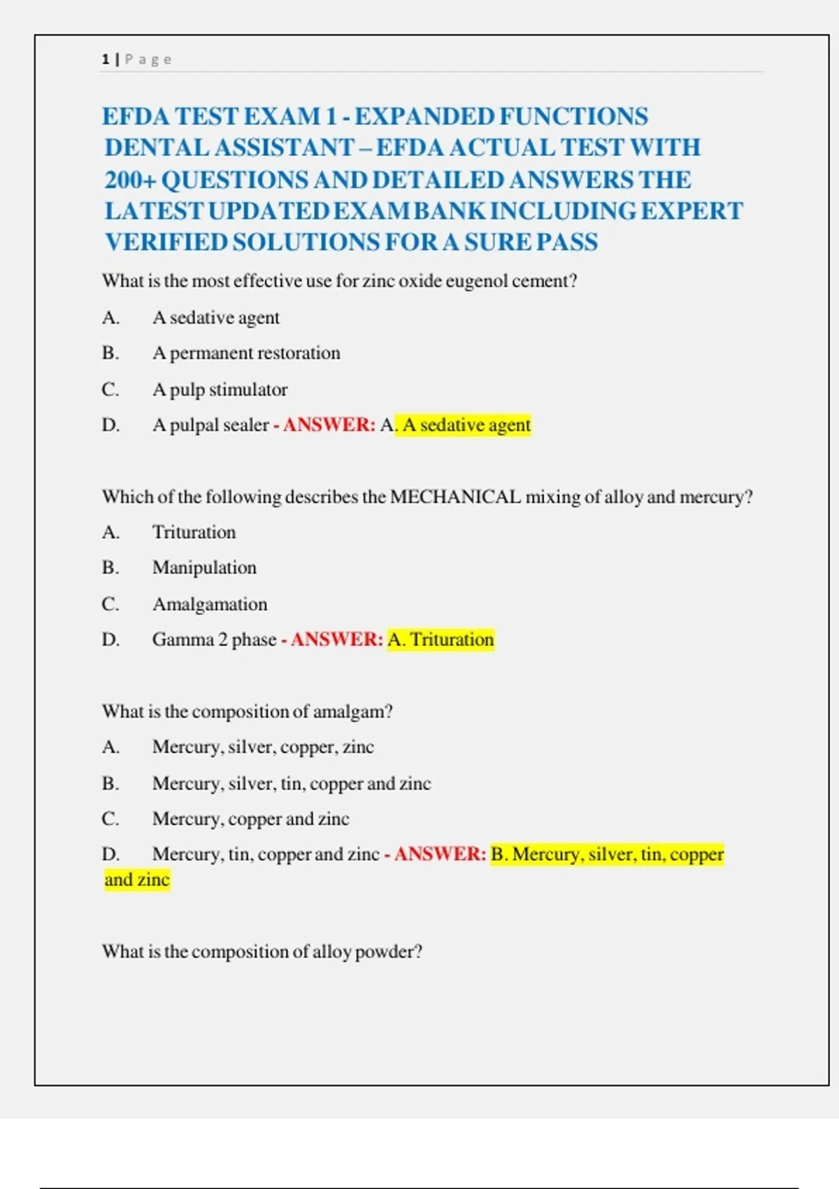 Expanded Functions Dental Assistants {EFDA} FINAL EXAM STUDY GUIDE | COMPLETE 2025–2026 REVIEW | 120 VERIFIED QUESTIONS & ANSWERS A +Expanded Functions Dental Assistants {EFDA} FINAL EXAM STUDY GUIDE | COMPLETE 2025–2026 REVIEW | 120 VERIFIED QUESTIONS & ANSWERS A +Expanded Functions Dental Assistants {EFDA} FINAL EXAM STUDY GUIDE | COMPLETE 2025–2026 REVIEW | 120 VERIFIED QUESTIONS & ANSWERS A +Expanded Functions Dental Assistants {EFDA} FINAL EXAM STUDY GUIDE | COMPLETE 2025–2026 REVIEW | 120 VERIFIED QUESTIONS & ANSWERS A +Expanded Functions Dental Assistants {EFDA} FINAL EXAM STUDY GUIDE | COMPLETE 2025–2026 REVIEW | 120 VERIFIED QUESTIONS & ANSWERS A +Expanded Functions Dental Assistants {EFDA} FINAL EXAM STUDY GUIDE | COMPLETE 2025–2026 REVIEW | 120 VERIFIED QUESTIONS & ANSWERS A +Expanded Functions Dental Assistants {EFDA} FINAL EXAM STUDY GUIDE | COMPLETE 2025–2026 REVIEW | 120 VERIFIED QUESTIONS & ANSWERS A +Expanded Functions Dental Assistants {EFDA} FINAL EXAM STUDY GUIDE | COMPLETE 2025–2026 REVIEW | 120 VERIFIED QUESTIONS & ANSWERS A +Expanded Functions Dental Assistants {EFDA} FINAL EXAM STUDY GUIDE | COMPLETE 2025–2026 REVIEW | 120 VERIFIED QUESTIONS & ANSWERS A +Expanded Functions Dental Assistants {EFDA} FINAL EXAM STUDY GUIDE | COMPLETE 2025–2026 REVIEW | 120 VERIFIED QUESTIONS & ANSWERS A +Expanded Functions Dental Assistants {EFDA} FINAL EXAM STUDY GUIDE | COMPLETE 2025–2026 REVIEW | 120 VERIFIED QUESTIONS & ANSWERS A +Expanded Functions Dental Assistants {EFDA} FINAL EXAM STUDY GUIDE | COMPLETE 2025–2026 REVIEW | 120 VERIFIED QUESTIONS & ANSWERS A +