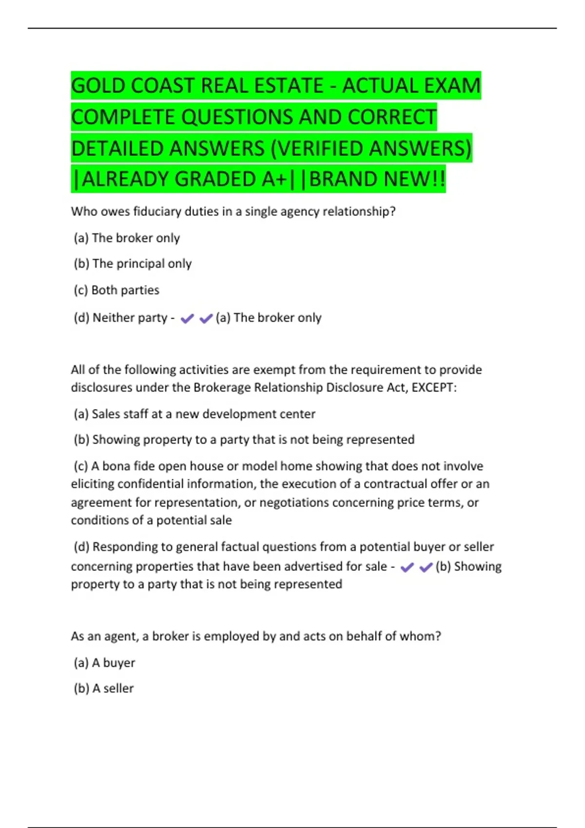 (b) A transaction broker has fiduciary duties to the seller.