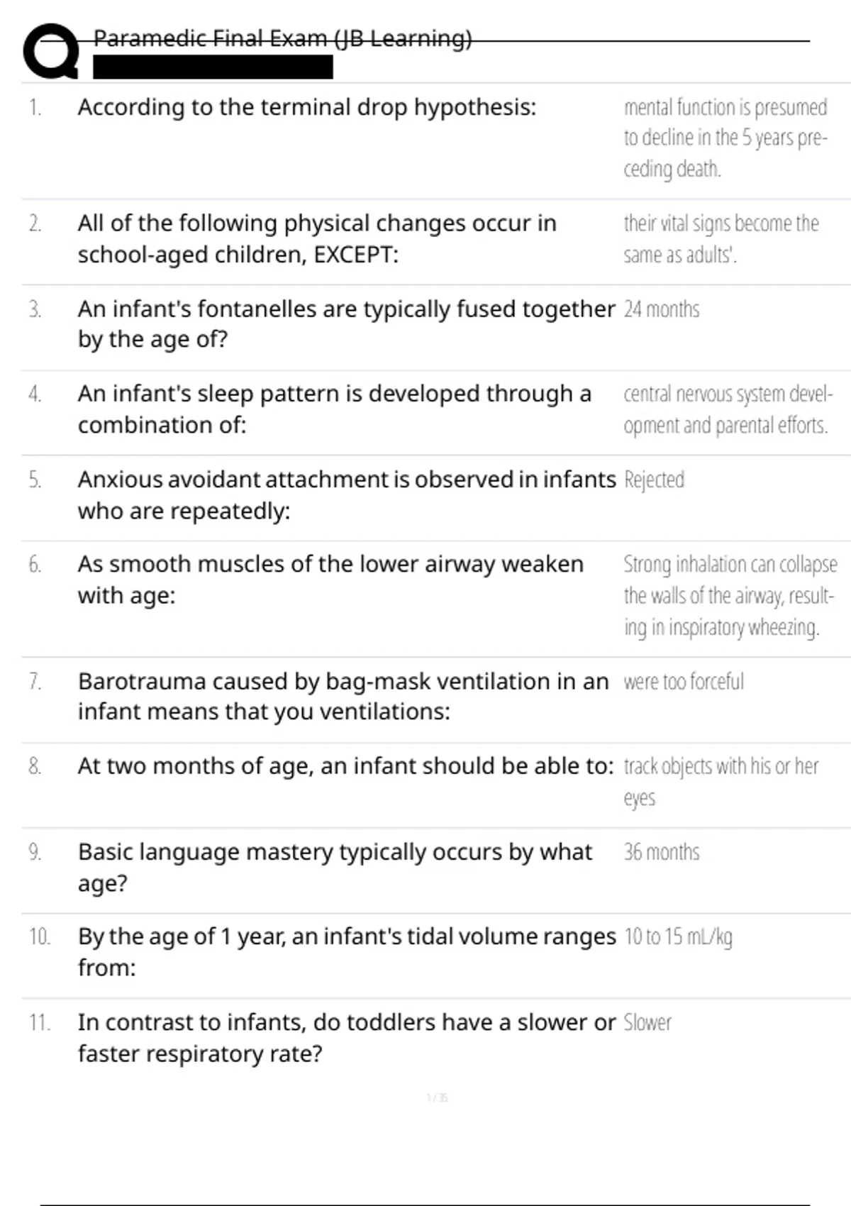 JB LEARNING PARAMEDIC EXAM Questions & Answers | Latest Already Graded A+ UPDATE 2025|2026Paramedic Final Exam (JB Learning)