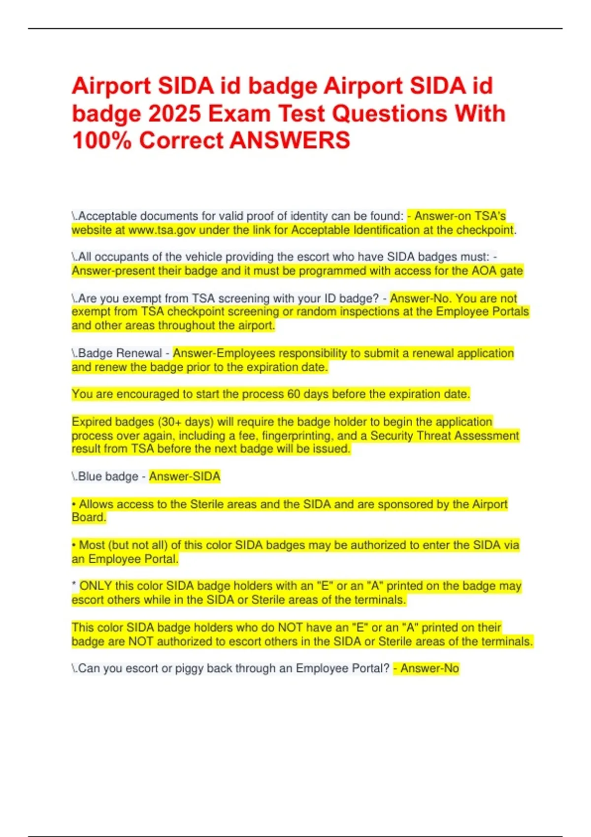\.Employee Portal Rules - Answer-Some, but not all, SIDA badge holders are authorized