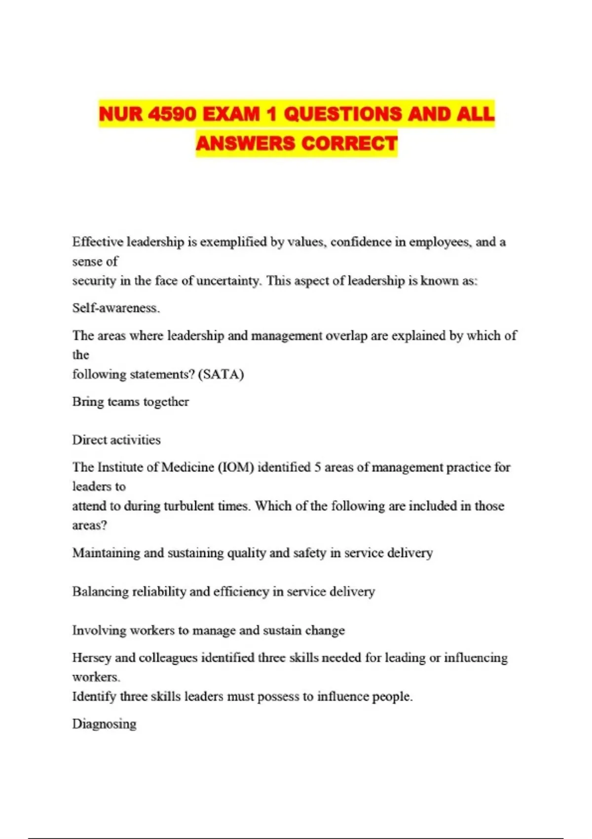NUR 4590 EXAM 1 QUESTIONS AND ALL ANSWERS CORRECT