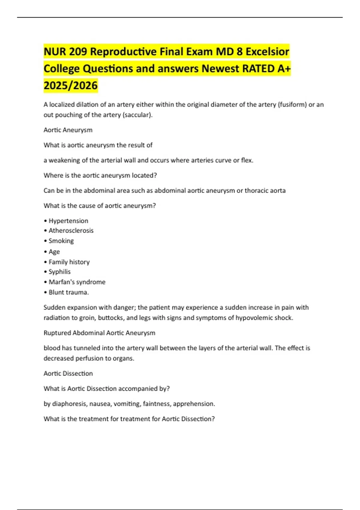 What is the treatment for treatment for Aor c Dissec on?