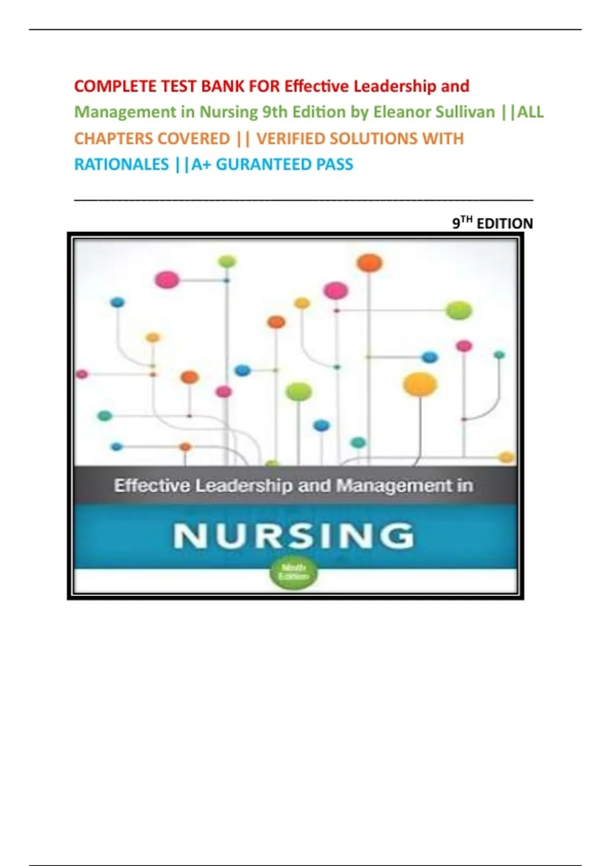 COMPLETE TEST BANK FOR Effective Leadership and Management in Nursing 9th Edition by Eleanor Sullivan ||ALL CHAPTERS COVERED || VERIFIED SOLUTIONS WITH RATIONALES ||A+ GURANTEED PASS COMPLETE TEST BANK FOR Effective Leadership and Management in Nursing 9th Edition by Eleanor Sullivan ||ALL CHAPTERS COVERED || VERIFIED SOLUTIONS WITH RATIONALES ||A+ GURANTEED PASS
