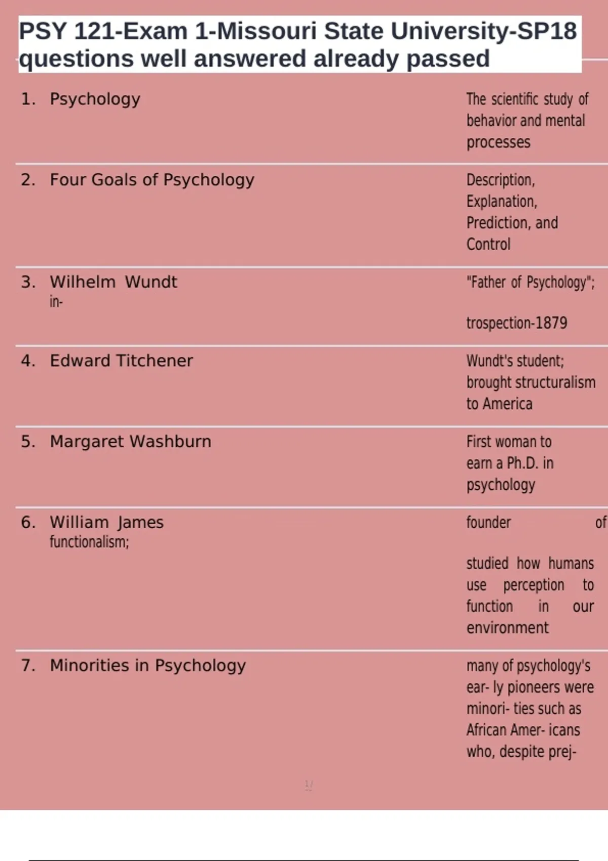 , PSY 121-Exam 1-Missouri State University-SP18