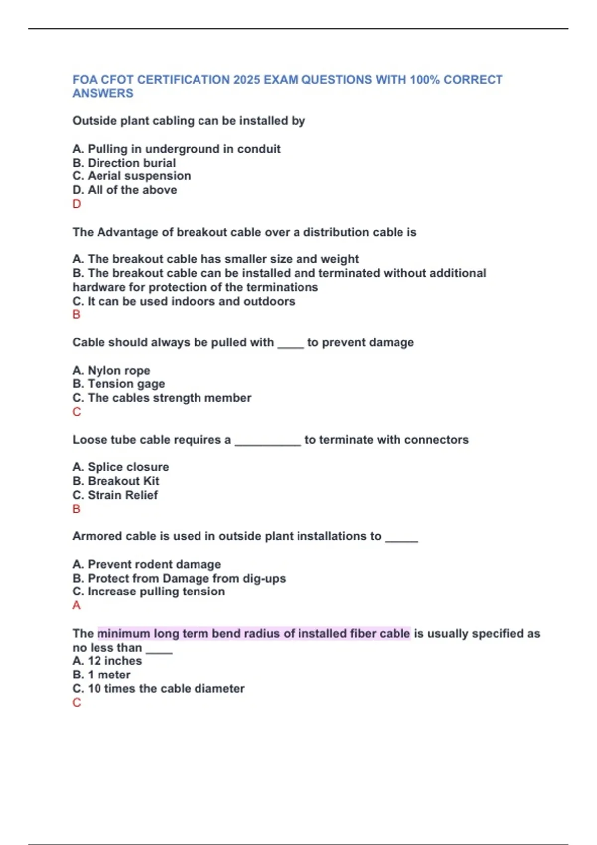 Outside plant cabling can be installed by