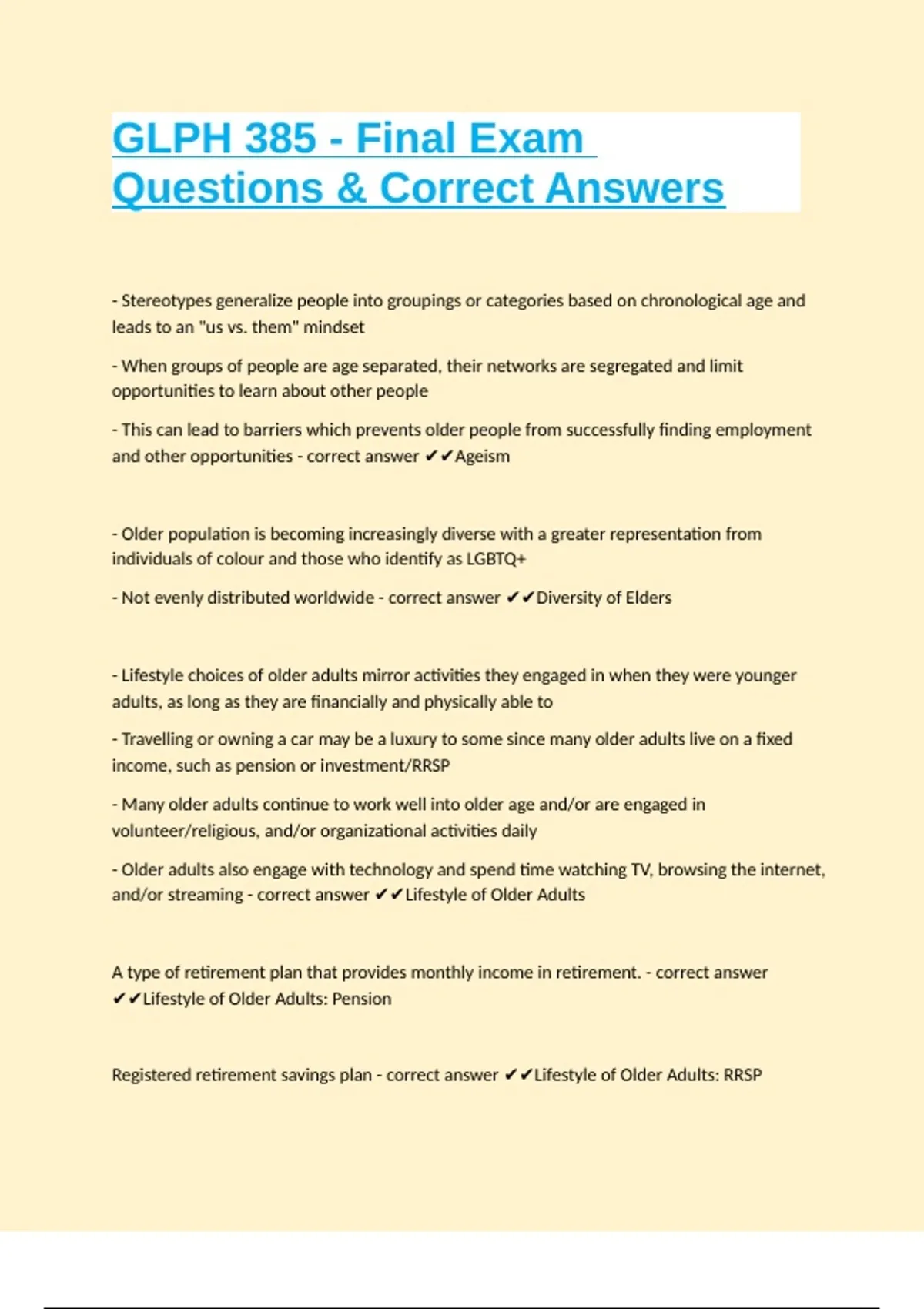 GLPH 385 - Final Exam Questions & Correct Answers