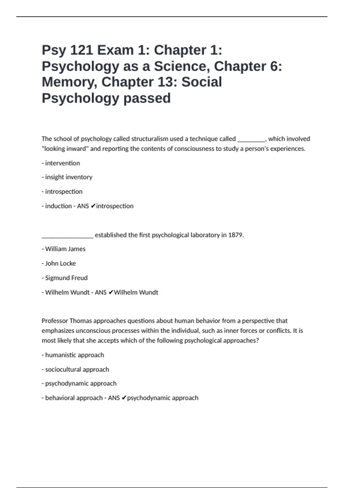 Psychology passed