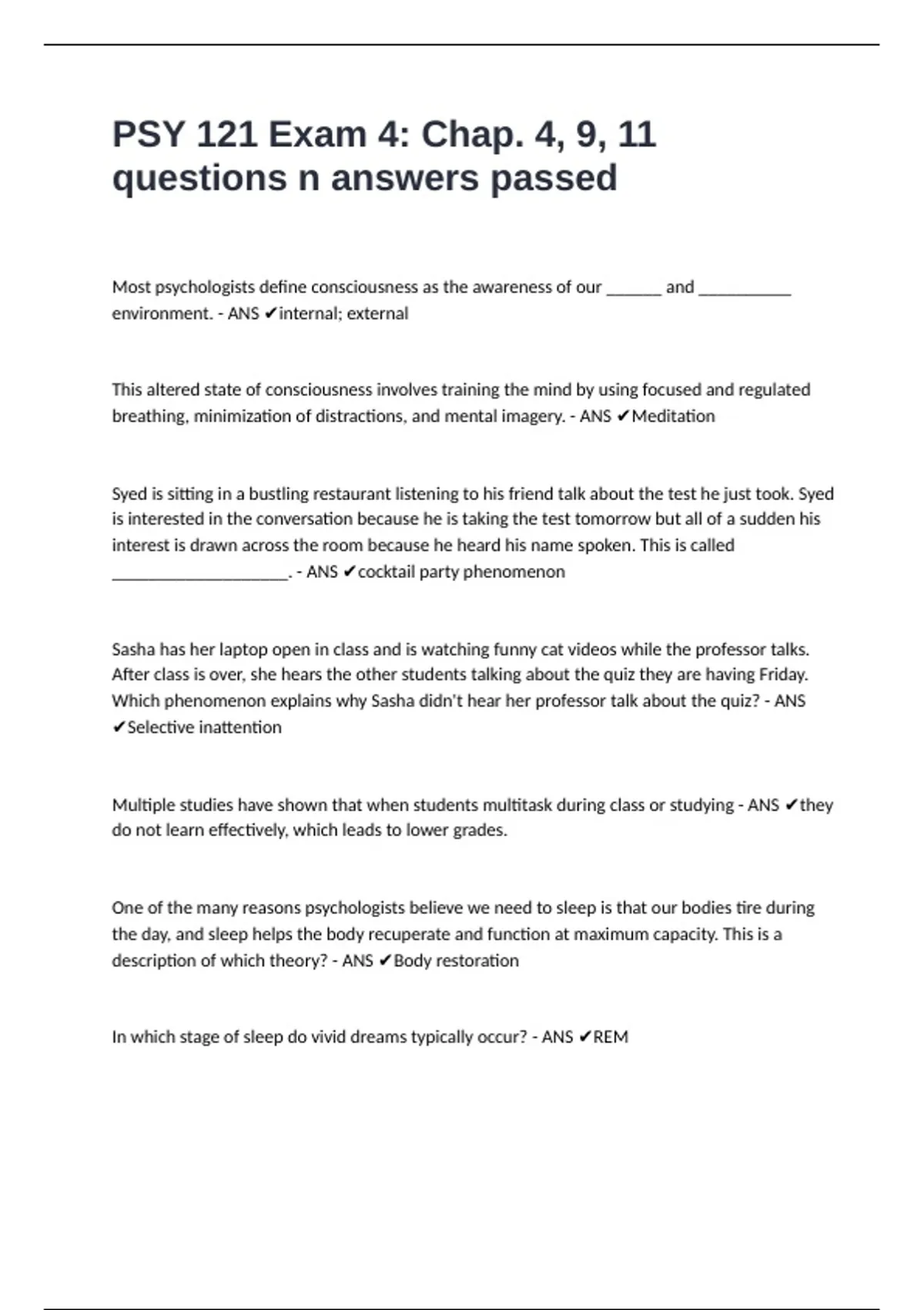 _________ perception is an example of awareness without attention. - ANS ✔Subliminal